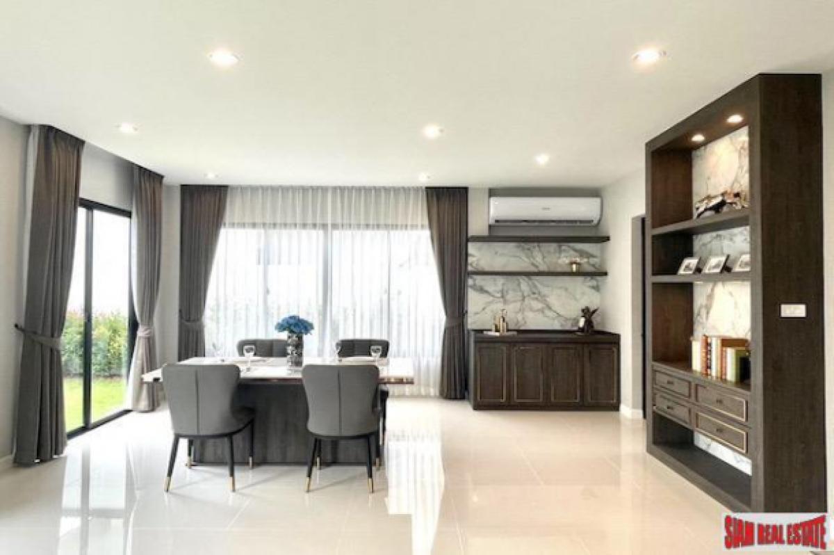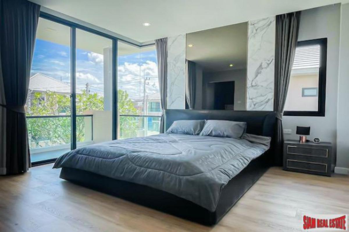 A new two storey luxury modern house for sale located in a the center of Hua Hin. This is a great location and a good family neighborhood.There is an open living plan with a living room, dining room and western kitchen. The kitchen is fully equipped with a stovetop, oven, microwave and refrigerator. The house also has a laundry room with a washing machine and dryer.