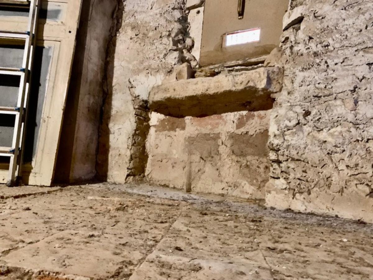 - 1st floor (upper street level): Entrance into an equipped kitchen with dining area and lounge of 24 m2, recent bathroom of 4 m2 (shower, sink, bidet, wc), sunny communal courtyard by the entrance of the house (shared with just 2 other neighbours, with ample space for each to have a private table and barbecue).