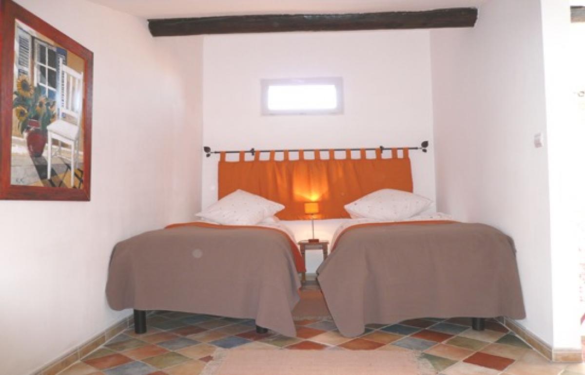 - 2nd floor: Landing of 1.5 m2, 1 bedroom apartment (Les Oliviers) of approximately 60 m2 in total, offering a bright lounge with kitchen and dining area of 38 m2 with large window looking at the square (table extends and can seat 8 people), one double-bedroom of 14 m2 with fitted wardrobe and bathroom of 8 m2 (corner bath, shower, handbasin and separate WC).