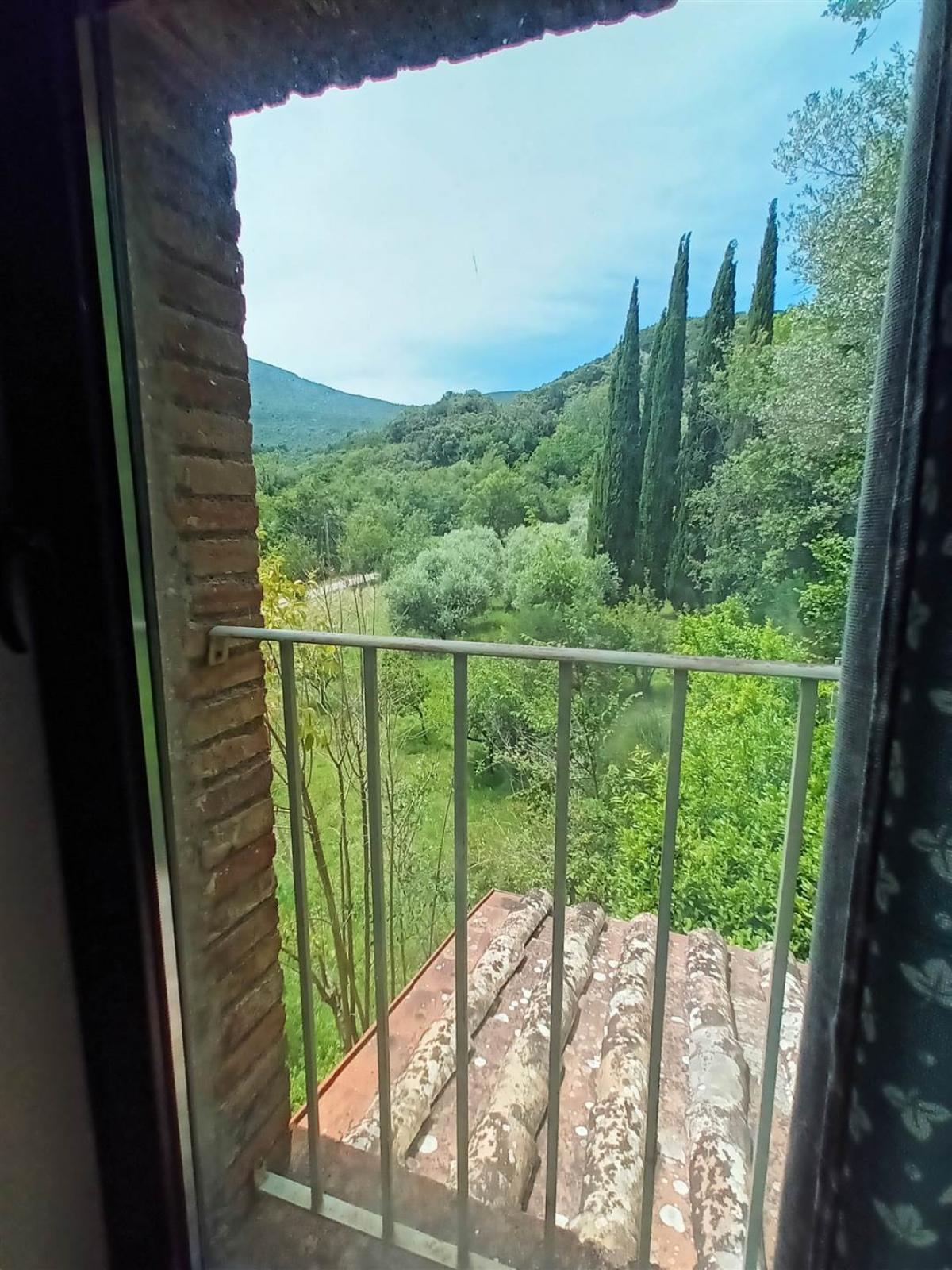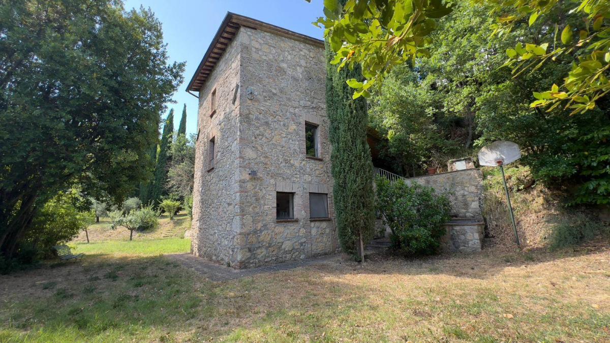 interior Description Located in the stunning countryside of Cetona, just 4 km from the town and in the most panoramic area of the municipality, this charming farmhouse presents itself as a small tower renovated with attention to the typical characteristics of Tuscan constructions. With an area of 110 sqm, the property is spread over two well-distributed levels. The main entrance opens onto a pleasant living room equipped with a fireplace and large panoramic windows that illuminate the space, creating a cozy and warm atmosphere. The small kitchen is functional and well integrated into the living area.