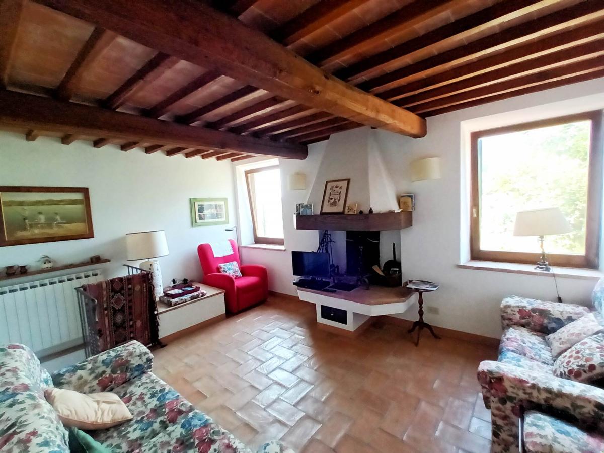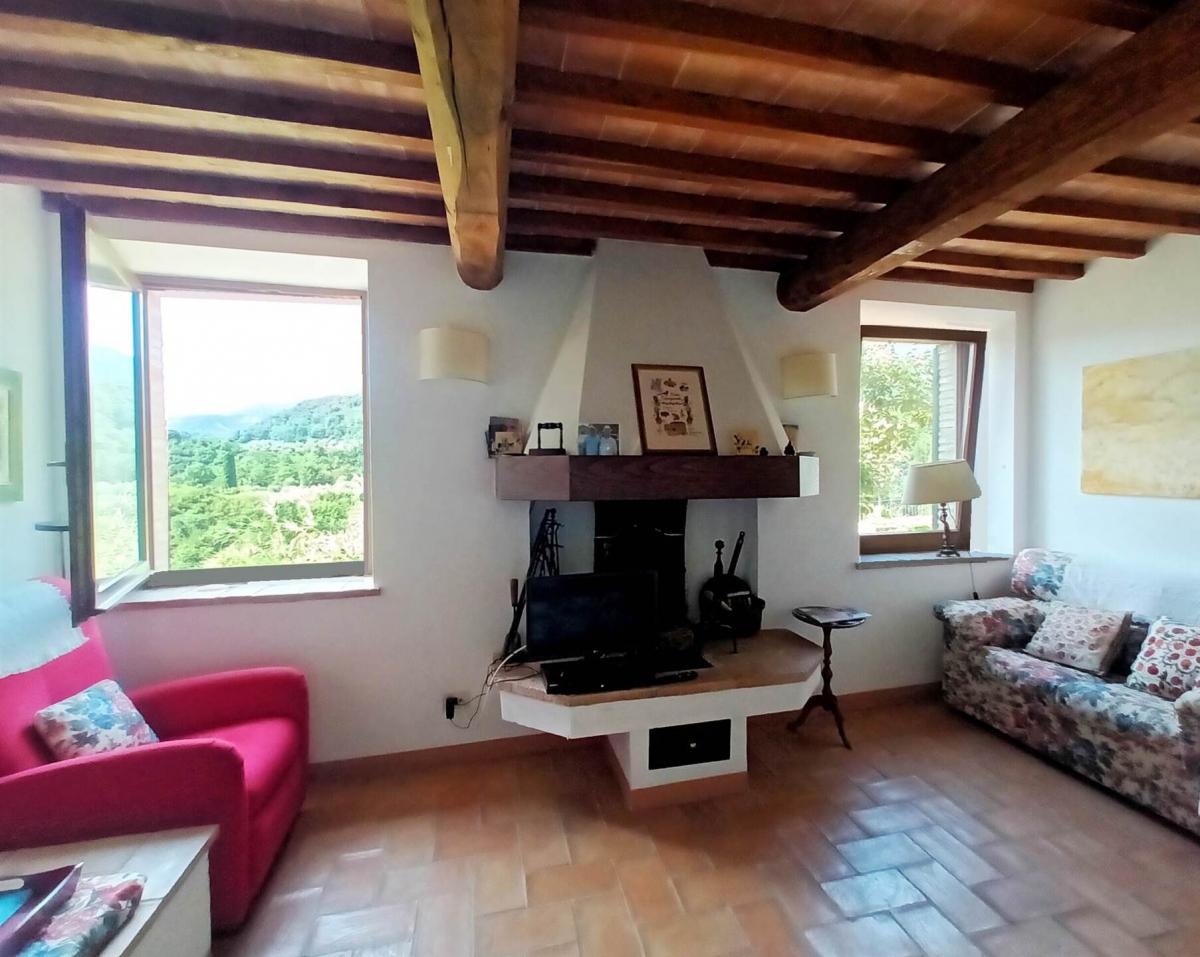 in the historic center of Cetona, in a unique panoramic location, this completely restored house is for sale, with a beautiful garden overlooking Monte Cetona. Restored in the 1990s, maintaining the characteristics of typical Tuscan homes, this unique property is spread over three levels.