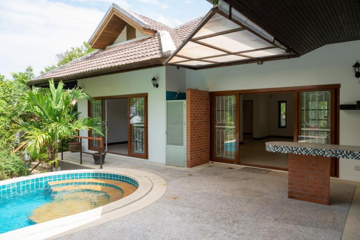 Peaceful and private, this lovely family home is located in Chalong just below the famous Big Buddha. The house sits on a huge 1 rai (1,600sqm) land plot with mature trees and a gently sloping gradient. The current owner has added a number of features including a double garage, laundry room, and Sala.