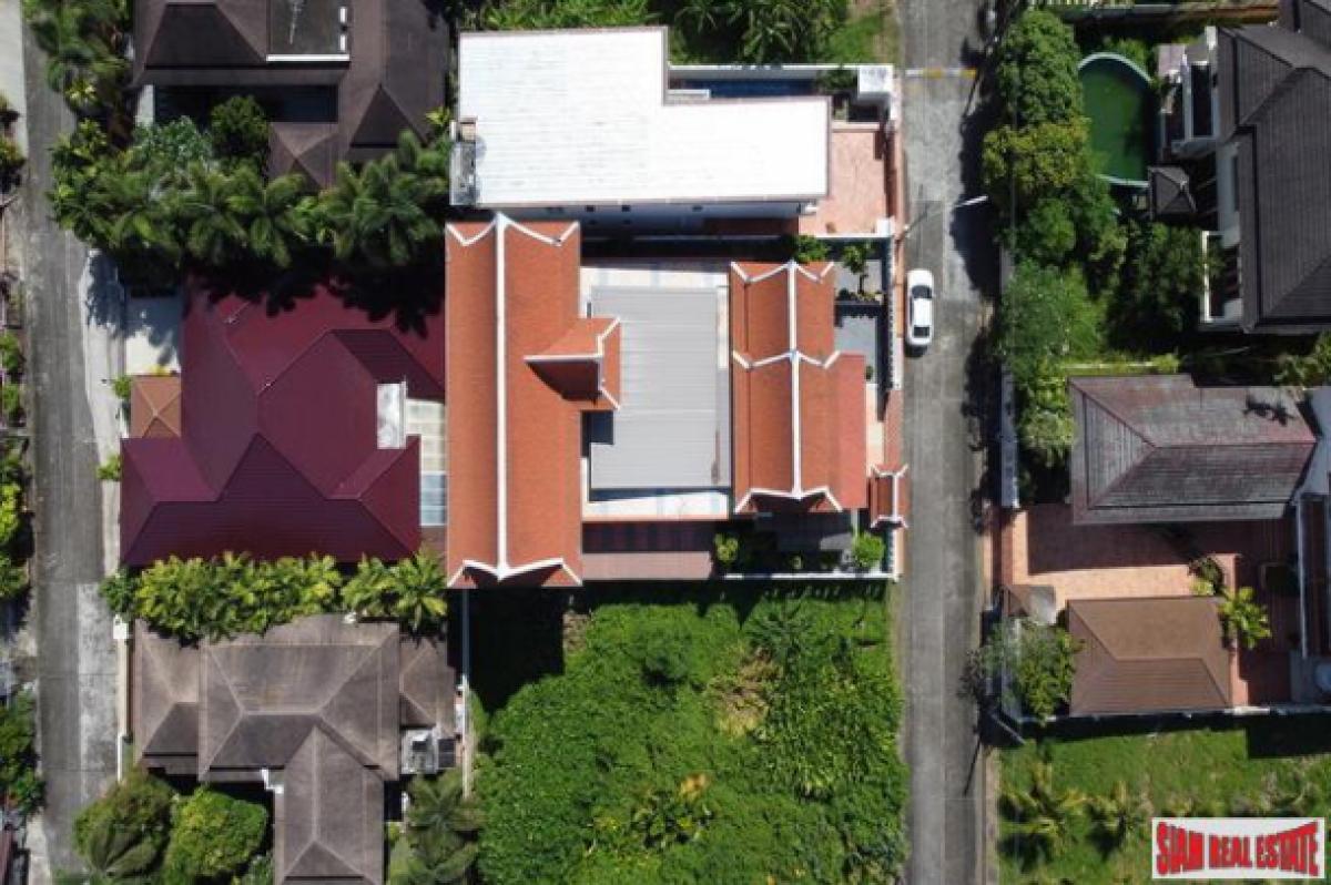 This is a very spacious Thai style detached house for sale in a secured Chalong estate. The house has three floors, five bedrooms, two kitchens and two storage rooms. There are a total of five air conditioning units in the house.The lower floor contains the carport that can park up to four cars. There is a hall in the middle of the house, a karaoke / movie room and kitchen on this floor.