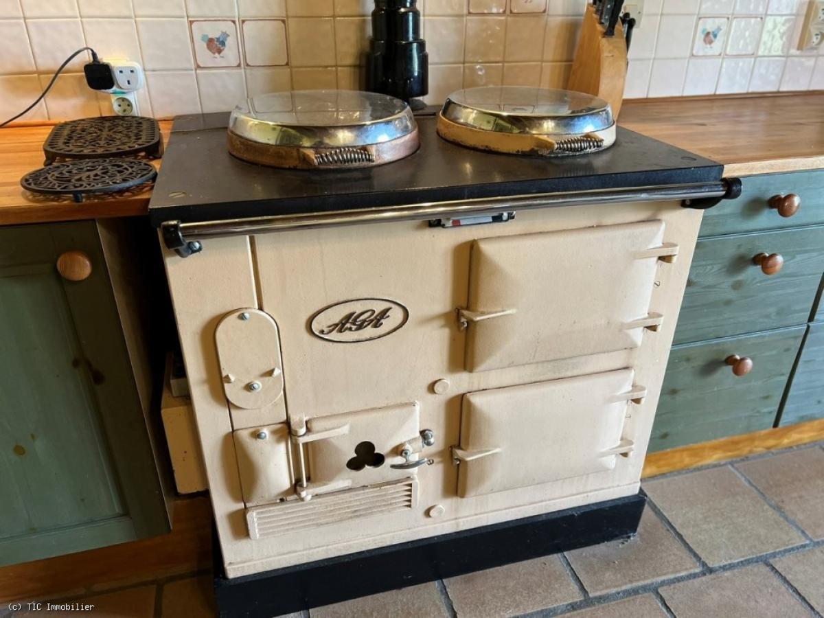 Living room 63m2 Tiled floor, 2 wood-burning stoves, oak beamsLiving room 28m2 Tiled floorFitted kitchen 27m2 Tiled floor, "Aga" cooker, French door to East terrace (perfect for the morning coffee and croissant)Rear Hall 16m2 Tiled floorWC 3.5m2 Tiled floor, hand basin, washing machine connectionBoiler room with oil-fired boiler