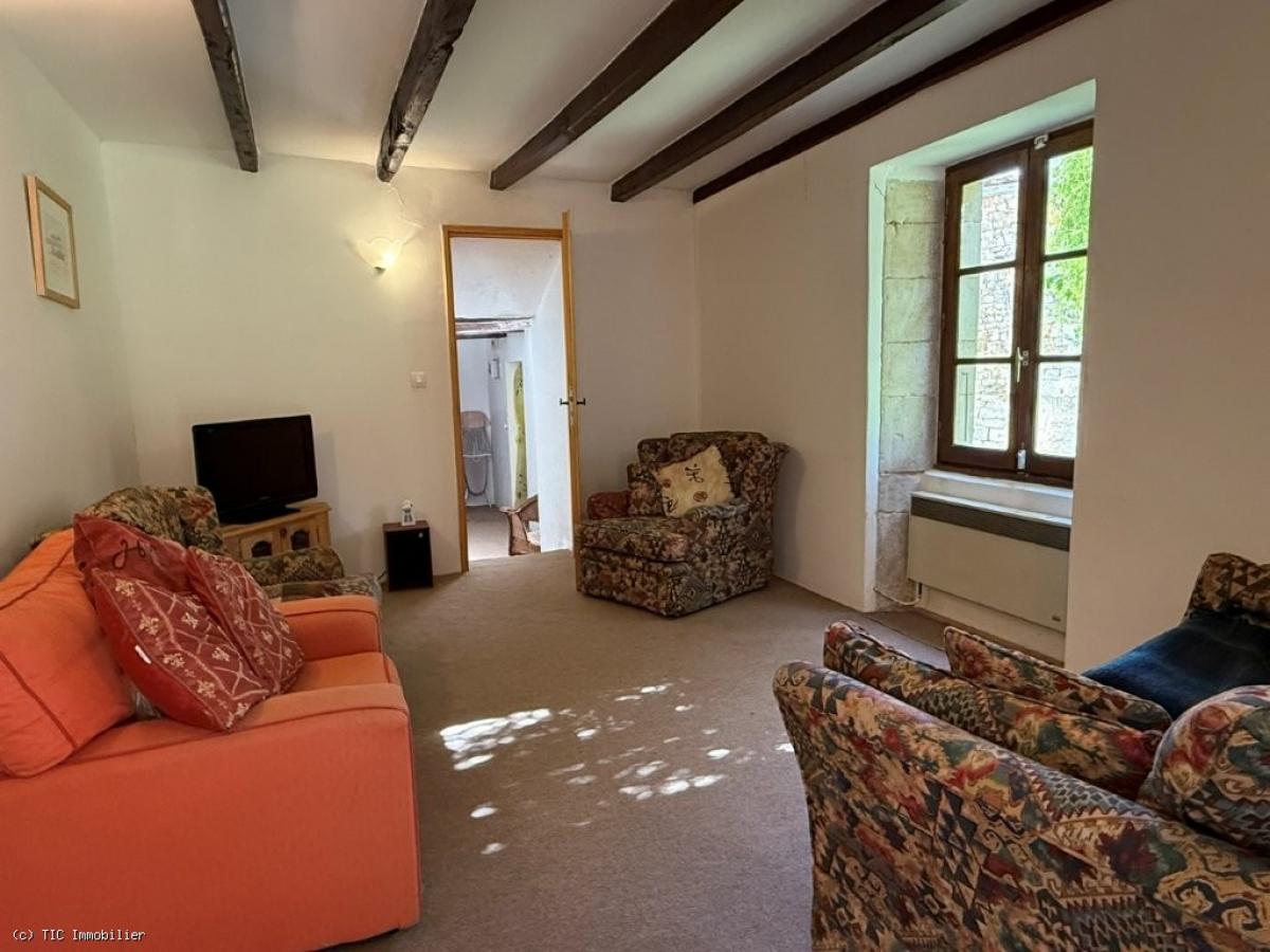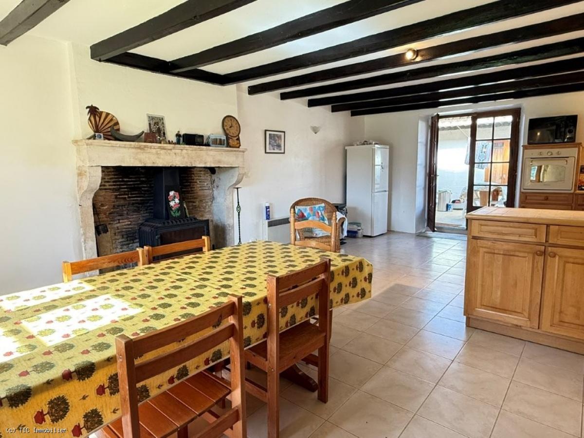 Situated in a quiet hamlet just 10 minutes from Champagne-Mouton, this property offers practical ground-floor living with three bedrooms and a spacious open-plan kitchen/dining area. An insert fireplace adds warmth and creates a cozy space for meals and gatherings.A large adjoining room / summer kitchen runs the full length of the house, providing a versatile additional space ideal for entertaining, hobbies, or simply making the most of the warmer months.