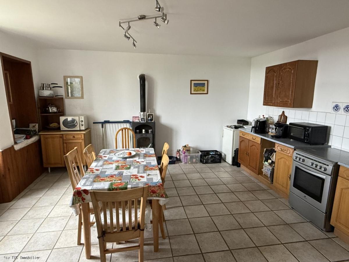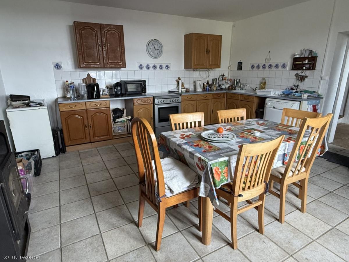 -Fitted kitchen (23m2): tiled floor, wood burner and electric heating