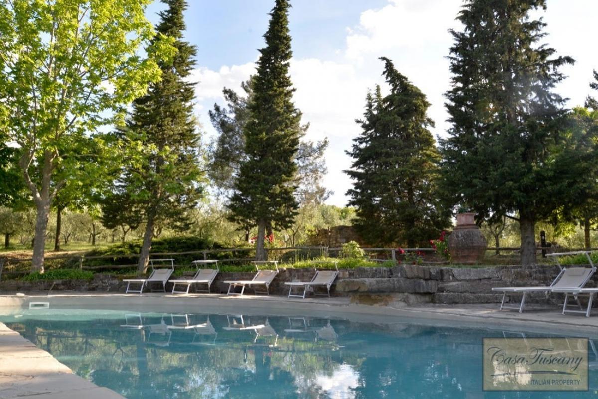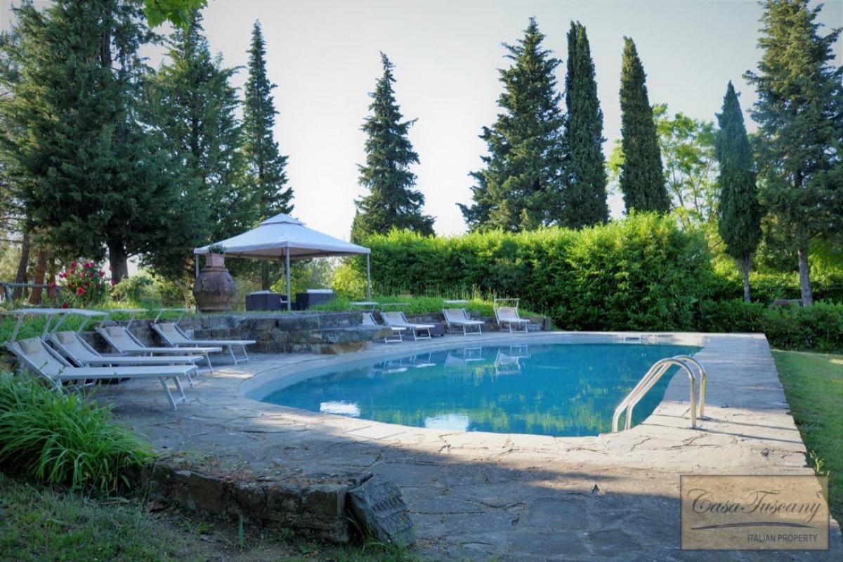 A charming farmhouse in the heart of the Chianti Classico region, halfway between Siena and Florence, surrounded by nature, in a private location yet only a few kilometres from the nearest town.Originally constructed in the 12th century as a watch tower, the property has a well-kept garden, swimming pool, surrounding fruit trees, olive trees, and a beautiful view of the Tuscan hills, giving the feeling of being in a peaceful oasis.