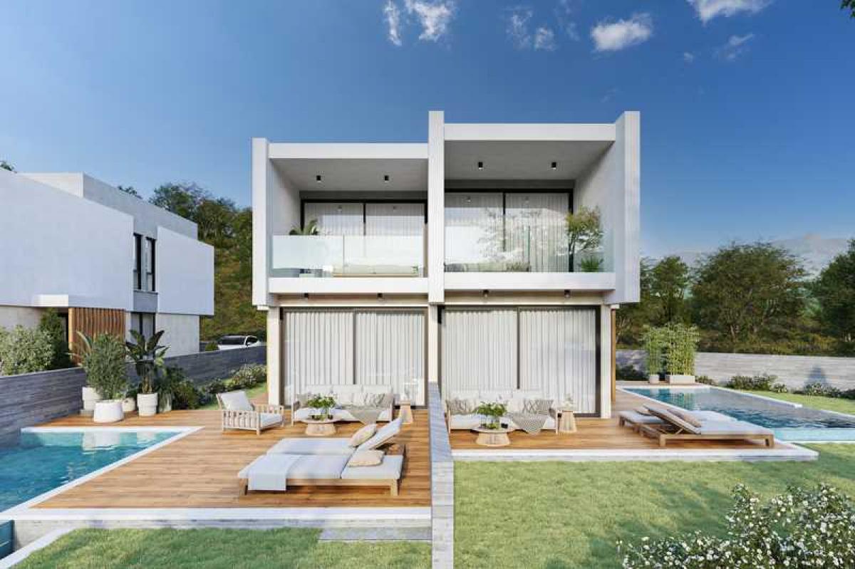 YL Luxury Homes Ltd presents an exclusive gated community comprising 11 two-storey residences, available in configurations of two and three bedrooms. Each property is equipped with a private swimming pool, enhancing the luxurious nature of this serene environment. The modern architectural design is thoughtfully integrated with the natural landscape, offering spacious and efficient living spaces.This exceptional location ensures every residence enjoys unobstructed views of Paphos and the Mediterranean Sea. The verdant natural surroundings contribute to the community's privacy and tranquillity, while essential amenities are conveniently situated just a two-minute drive away.