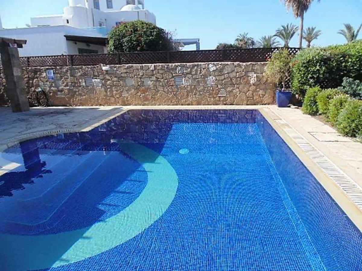 Interior the villa comprise on the ground level partly separate kitchen, living dining area with patio doors leading to a large covered veranda by the pool with a sea view. Further there are 3 double bedrooms and a family bathroom. The master bedroom has en suite sower facilities.