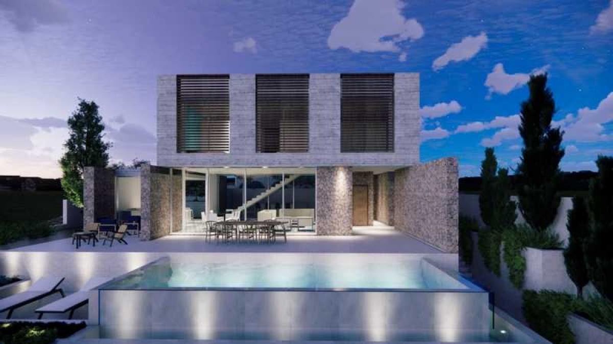 This Hilltop villa features four spacious bedrooms, three bathrooms and an additional guest toilet. Distinguished by the use of high-quality materials, it's a testament to sophistication. Fairfaced concrete, stone walls, and wood cladding are employed to create a captivating aesthetic, ensuring a unique character.