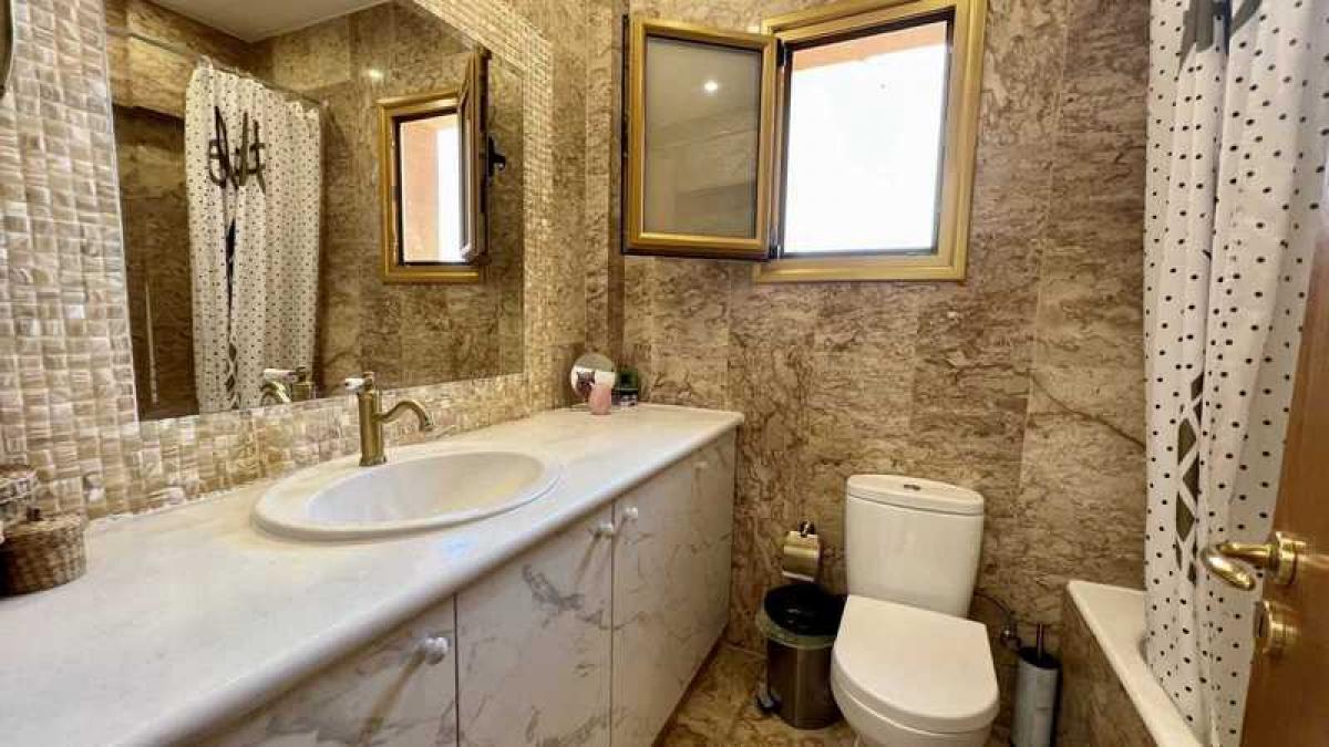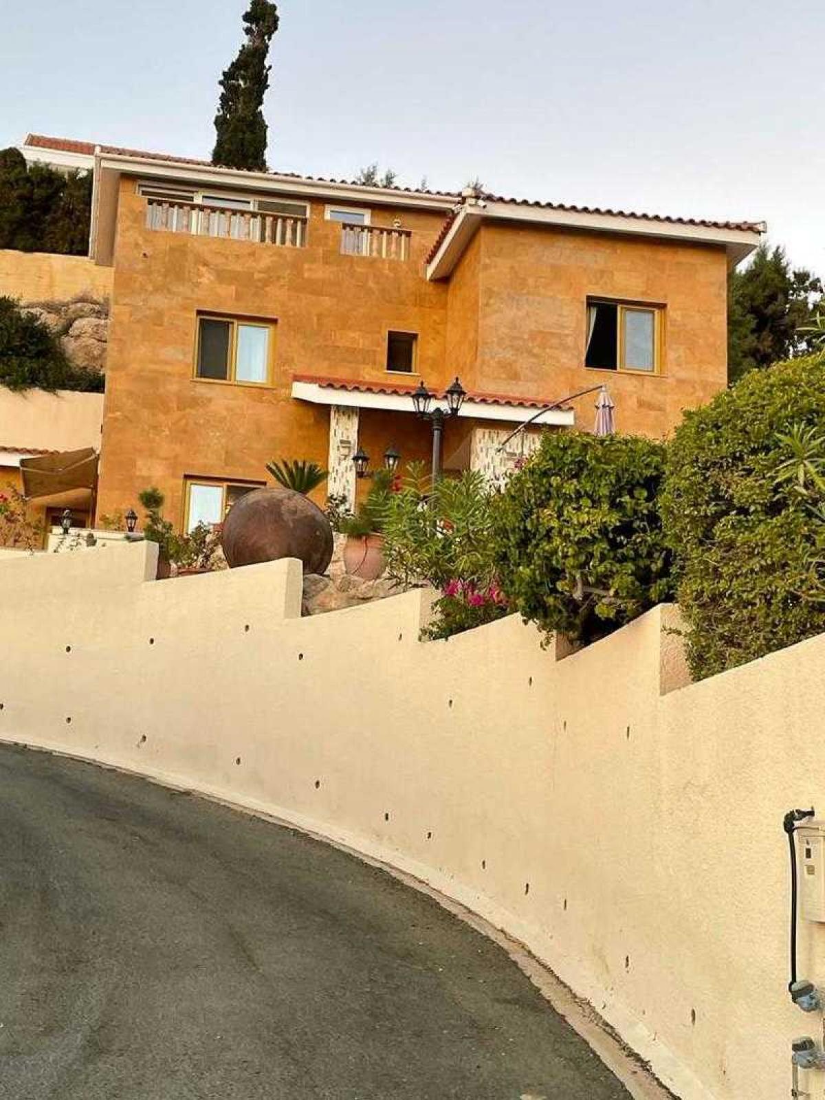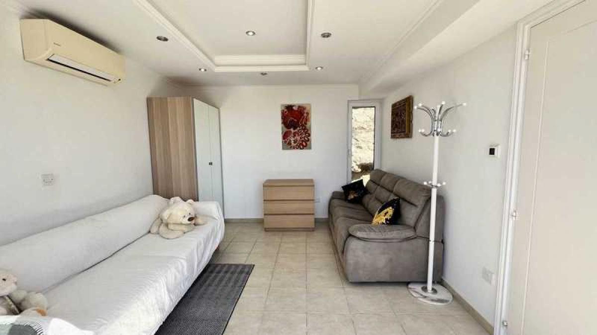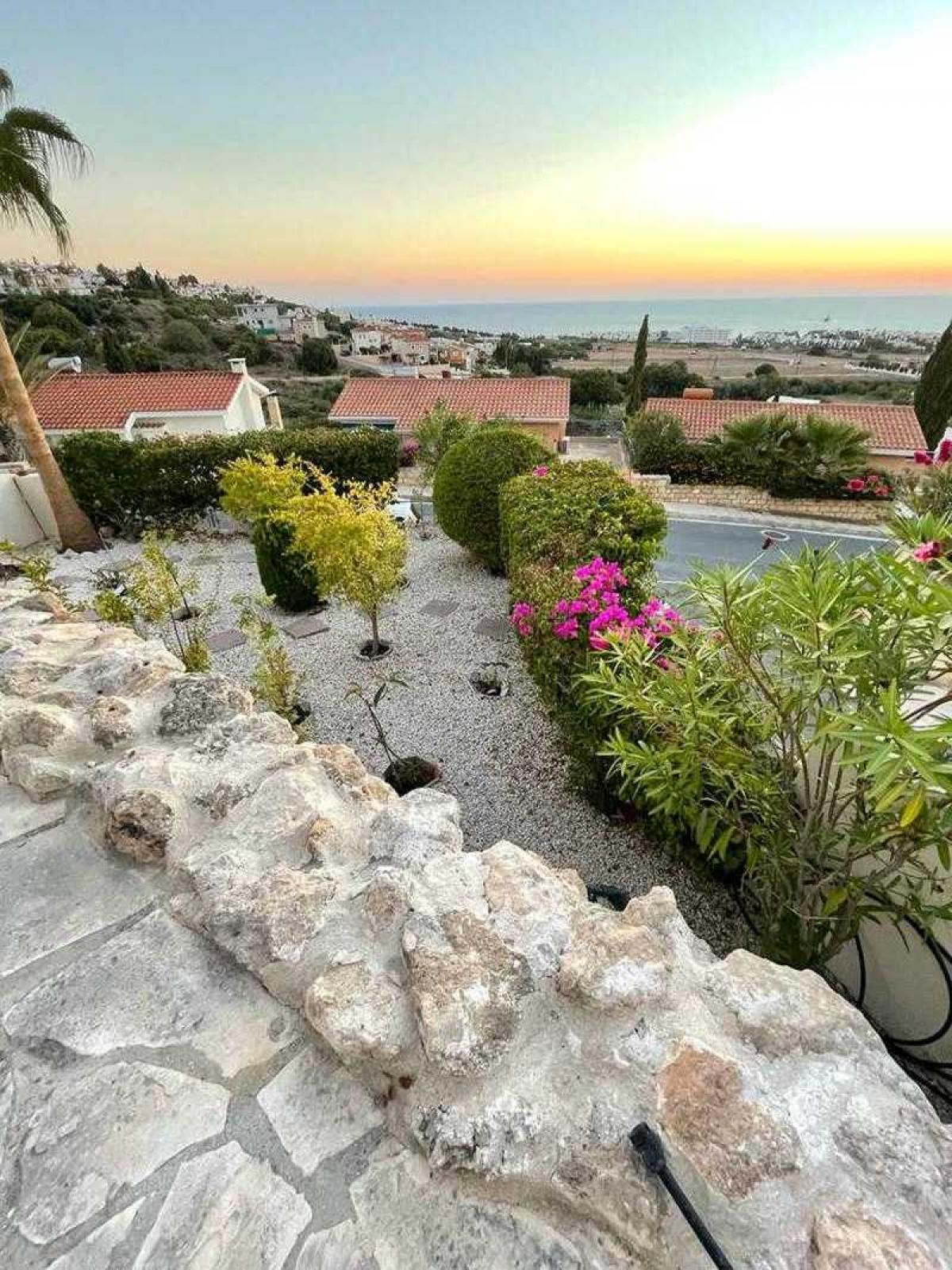 This villa is located just a few minutes drive from Paphos, the Aspire private English School, Lidl supermarket with panoramic views of the Mediterranean coast and a ship on the rocks. The villa is decorated with marble, which gives it a delightful look. It is located on a hill.The plot has 4 levels, on different levels with a well-maintained garden and enough space to accommodate an Infinity pool if necessary. The house has three floors. The layout of the first floor consists of a living room/recreation areas, open-plan kitchens with a beautifully decorated bar counter decorated with an illuminated onyx composition. There is also a guest toilet and a separate laundry/utility room on this level.