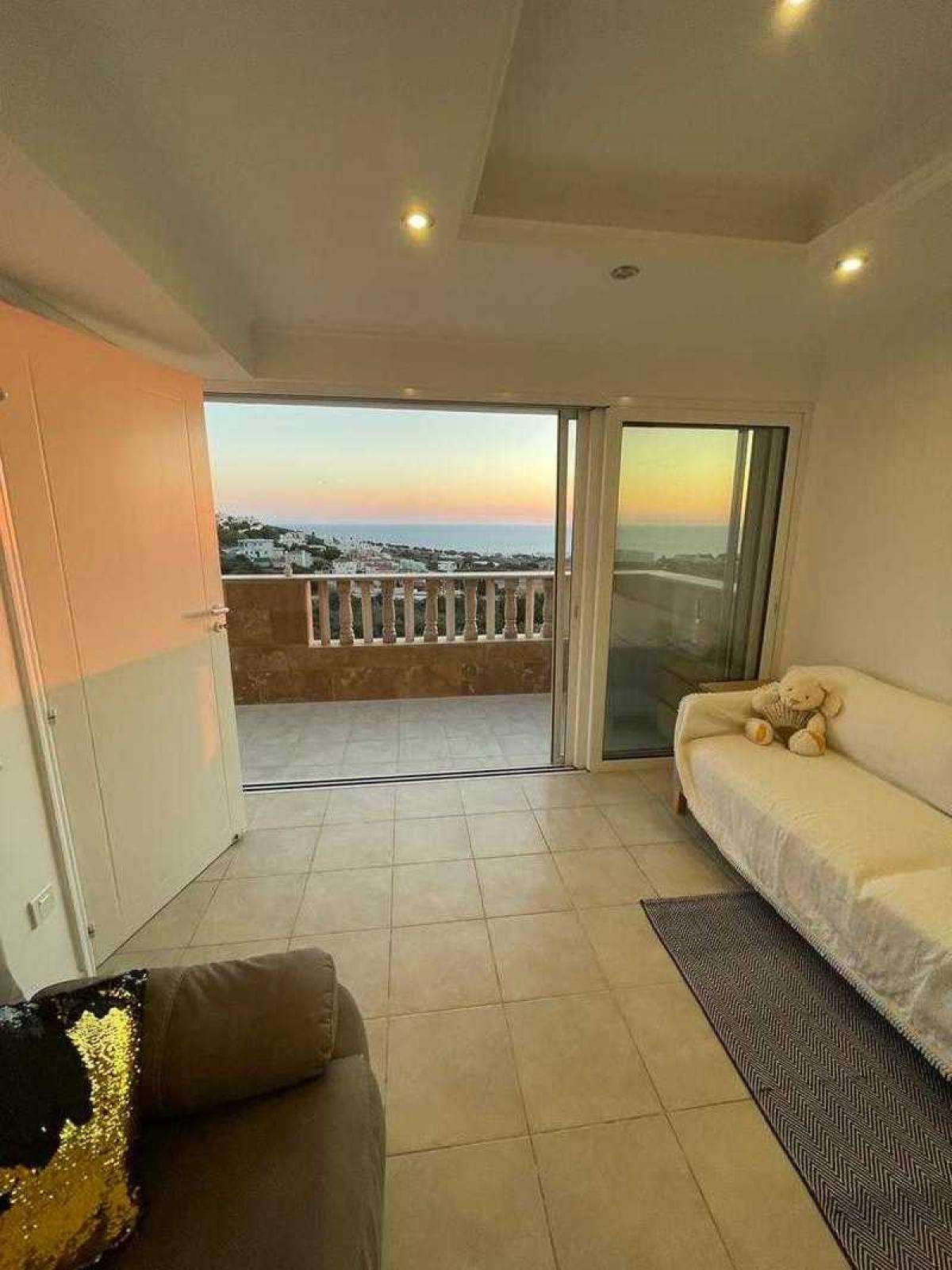 On the second floor there are three double bedrooms, one with its own bathroom, the other two with a shared family bathroom. On the third floor there is a fourth bedroom with underfloor heating, with a large balcony and a fascinating view of the sea. The house is built to the highest standards: marble floors, stairs and bathrooms, double glazed windows, security system (4 cameras), mosquito nets, thermal insulation, high-quality plumbing and kitchen appliances, onyx trim, crystal chandeliers, etc. There is a garage for 2 cars and 5 kW solar panels that provide the house electricity.