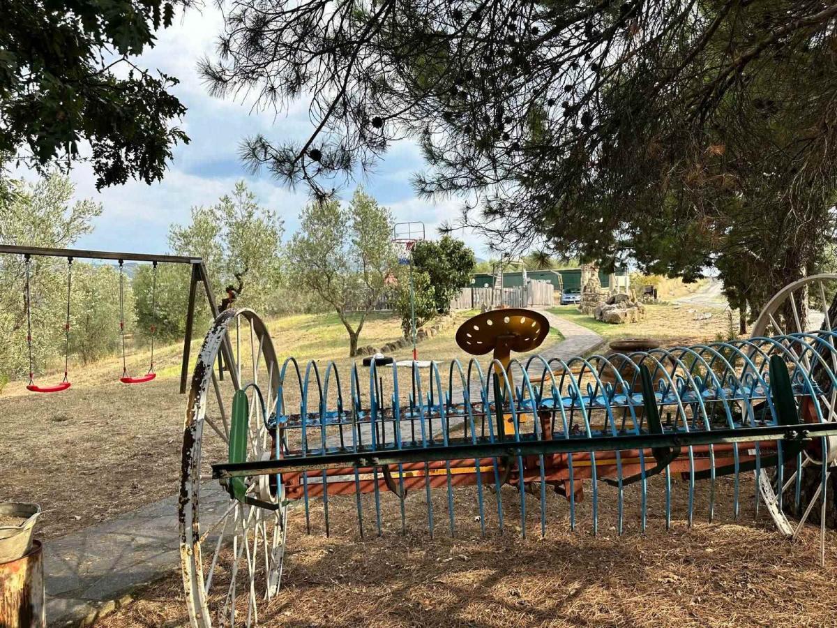 A beautifully maintained 5,500 sqm garden surrounds the farmhouse, featuring a panoramic swimming pool perfect for guest relaxation, barbecue areas, and various agricultural structures (pigsty, hay barn, tool shed, woodshed).
