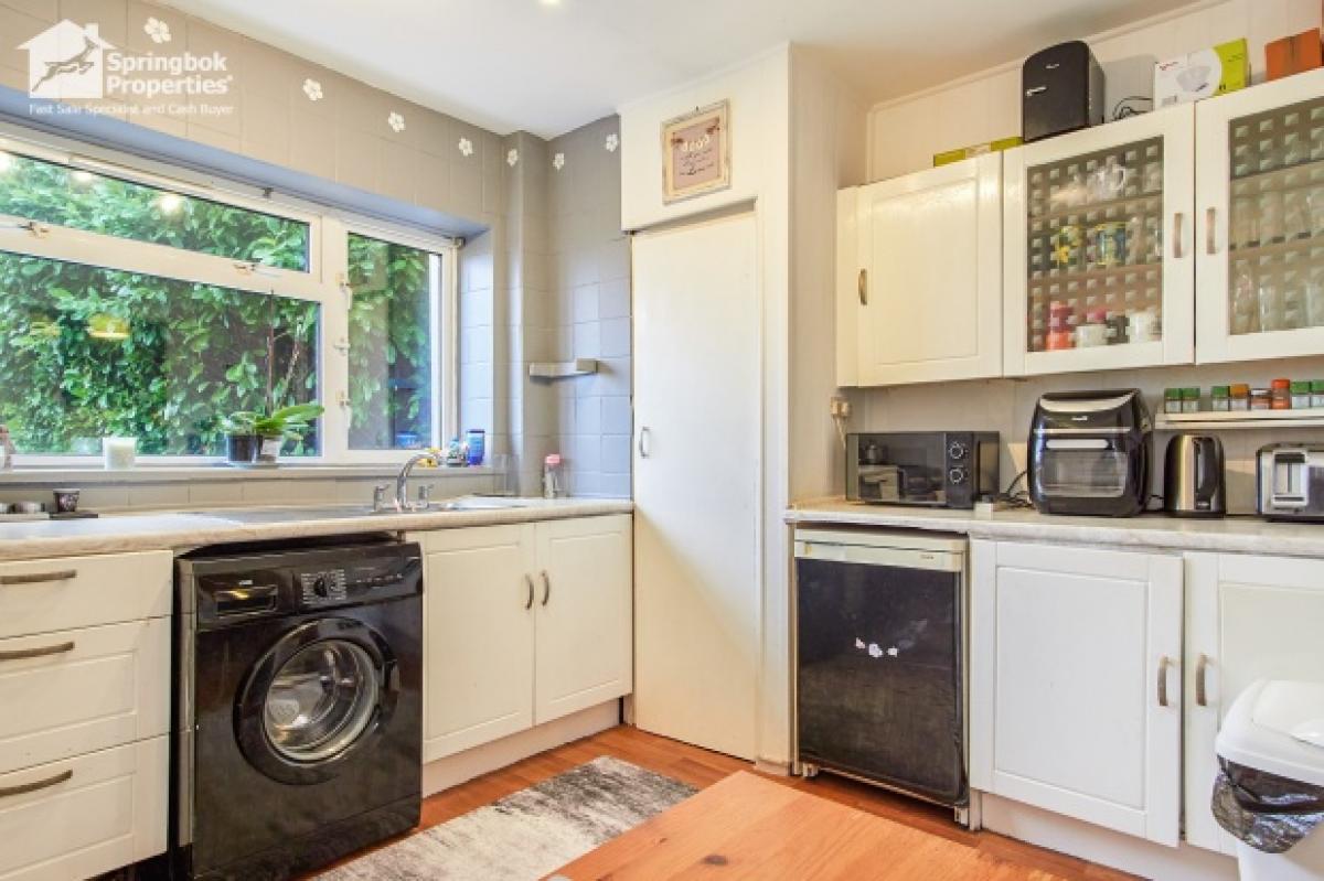 The kitchen is a true heart of the home, featuring a practical layout with ample cabinetry, tiled splashbacks, and worktop space for everyday cooking. A large window overlooks the rear garden, while an adjacent utility room adds brilliant extra storage and practicality, with access to the outside--perfect for busy family routines or entertaining.