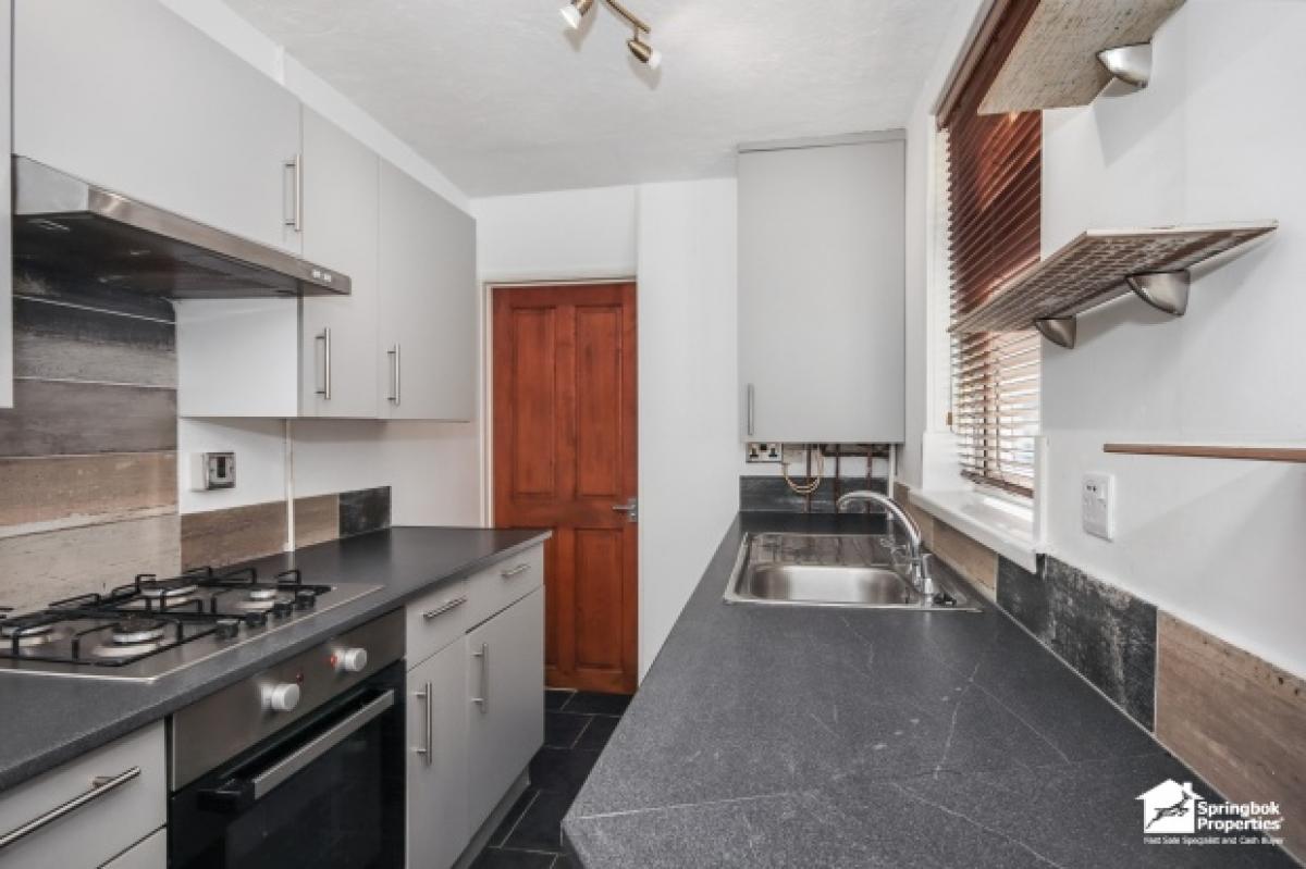 The property has benefited from some updating in recent years, including a new fitted kitchen, though certain areas would welcome further cosmetic attention, making it ideal for those wishing to personalise their next home. Outside, there is an enclosed courtyard-style garden to the rear, which provides a private space with potential to landscape and improve.