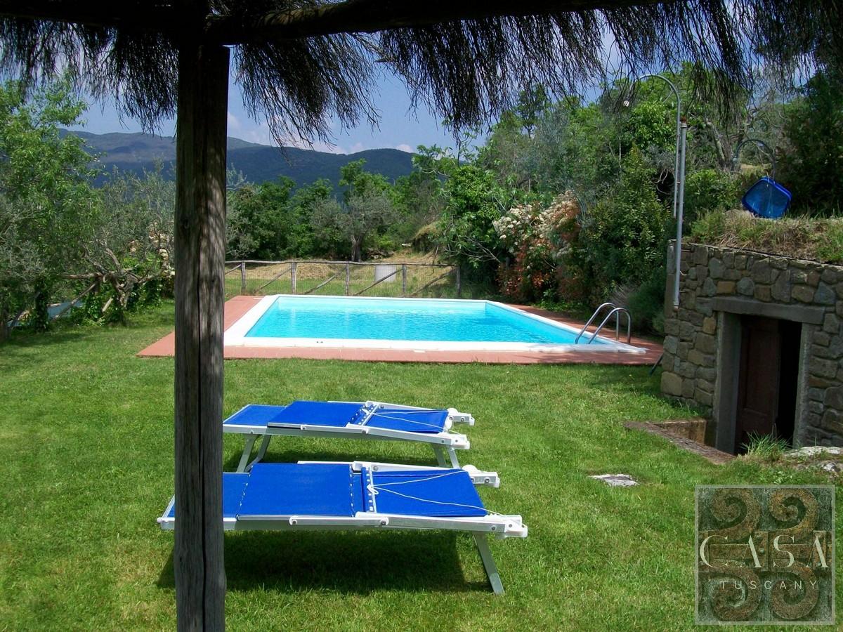 Restored in keeping with Tuscan style, the house features stone walls, exposed wooden beams, a fireplace and cotto floors. It is in excellent condition.