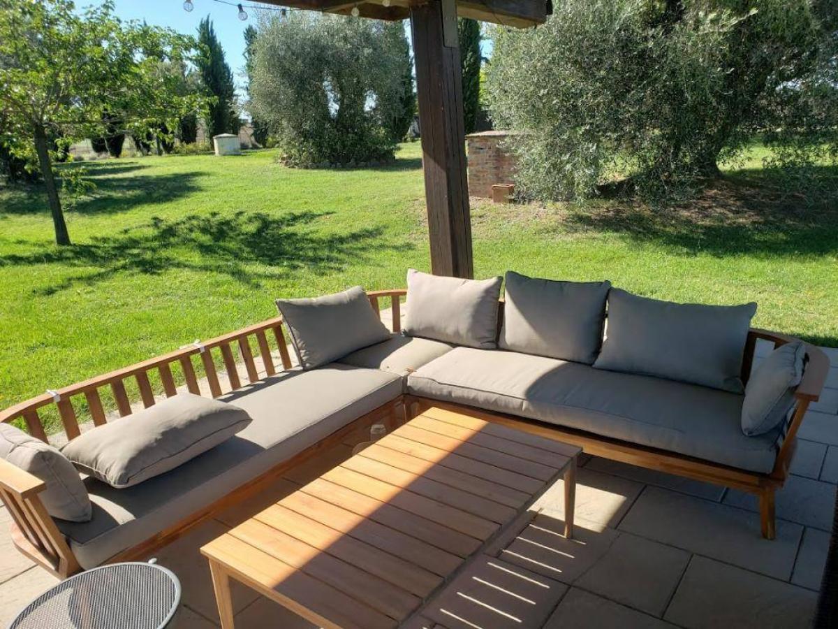 Set within 1.5 hectares of well-maintained gardens, the property features an olive grove and a 5x10-meter swimming pool. The property is accessed by a classic Tuscan white road, further enhancing its authentic charm and its connection to the surrounding countryside.