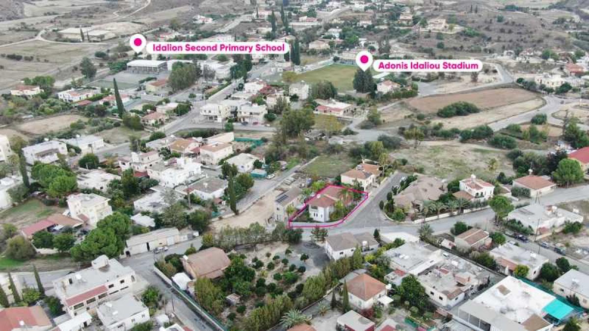A modern, two-storey house located in the suburbs of Nicosia, Dali.The ground floor consists of a living room area with a fireplace, a dining area, a secondary sitting area, a kitchen with a kitchenette/laundry room, an en-suite guest toilet, a bedroom and covered verandas.