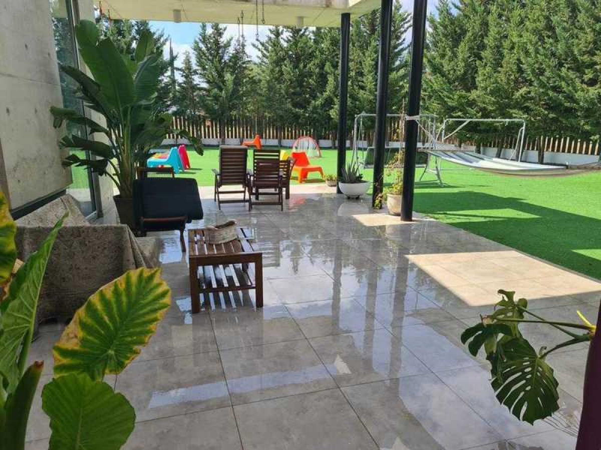 It consists of a large living room and dining room, a TV room, an independent kitchen with a utility room, an office and a guest toilet on the ground floor. Upstairs there are 4 bedrooms, all with bathrooms, TV sockets and large fitted wardrobes. There is also a basement with its own external staircase and entrance. The house has underfloor heating. Outside there is a comfortable covered area, large garden, swimming pool with toilet and shower and covered parking for two cars.