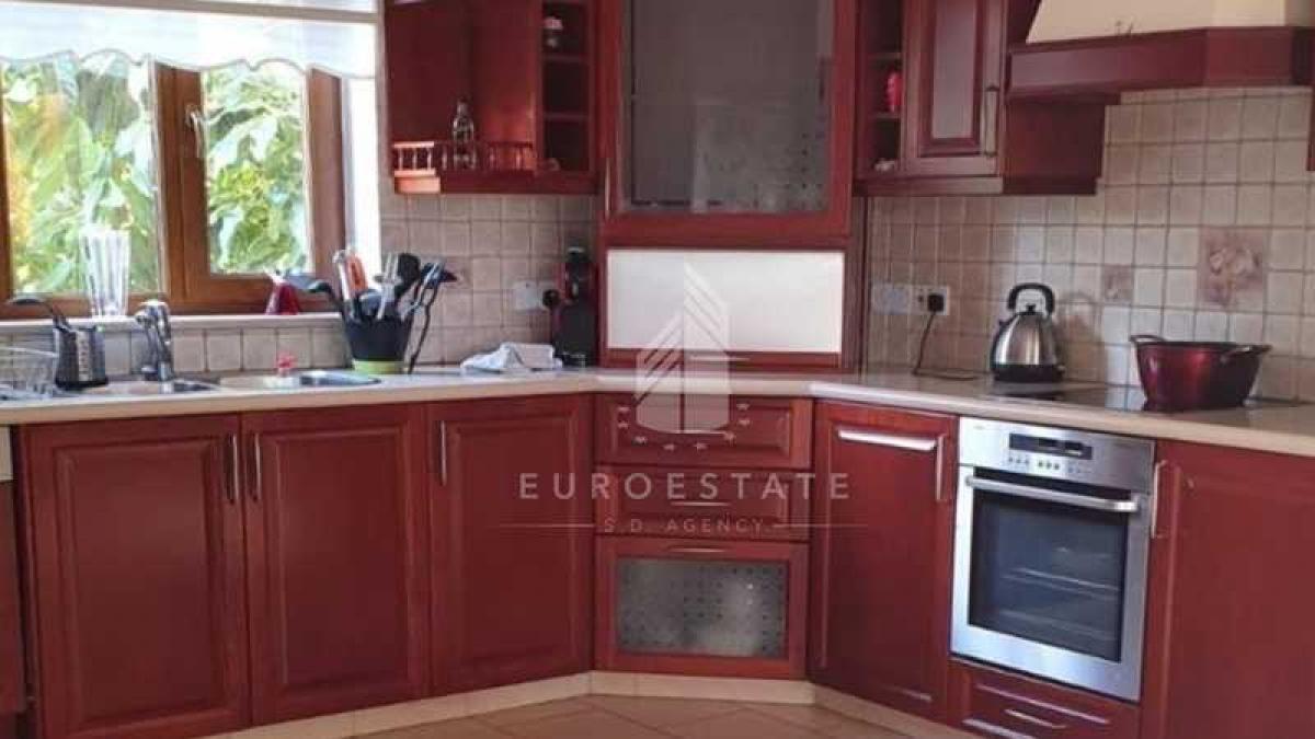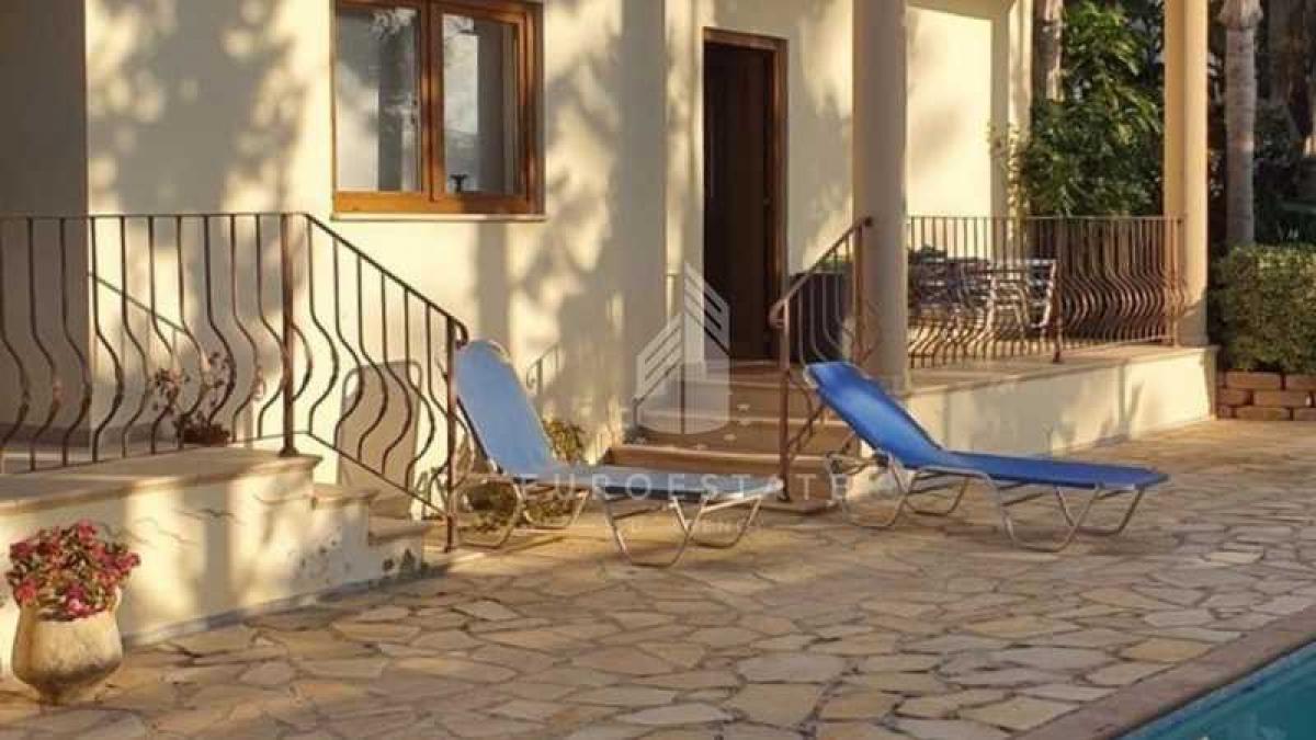 Located in a quiet residential area of Derynia Village, this 5-bedroom villa offers ample outdoor space with a private pool, BBQ area, garage, and mature gardens. The reception room with bay windows leads to an 'L' shaped living/dining area and a large kitchen. The ground floor includes a guest WC and a covered veranda with pool views. Upstairs features a utility room, family bathroom, and 4 large double bedrooms, with the master bedroom having an ensuite and walk-in wardrobes, and the second bedroom accessing a spacious veranda.The basement is a self-contained living space with a living/dining area, fireplace, kitchen, double bedroom, and family bathroom, ideal for rental income. Close to schools, traditional tavernas, and local amenities, this villa is perfect for a family home.