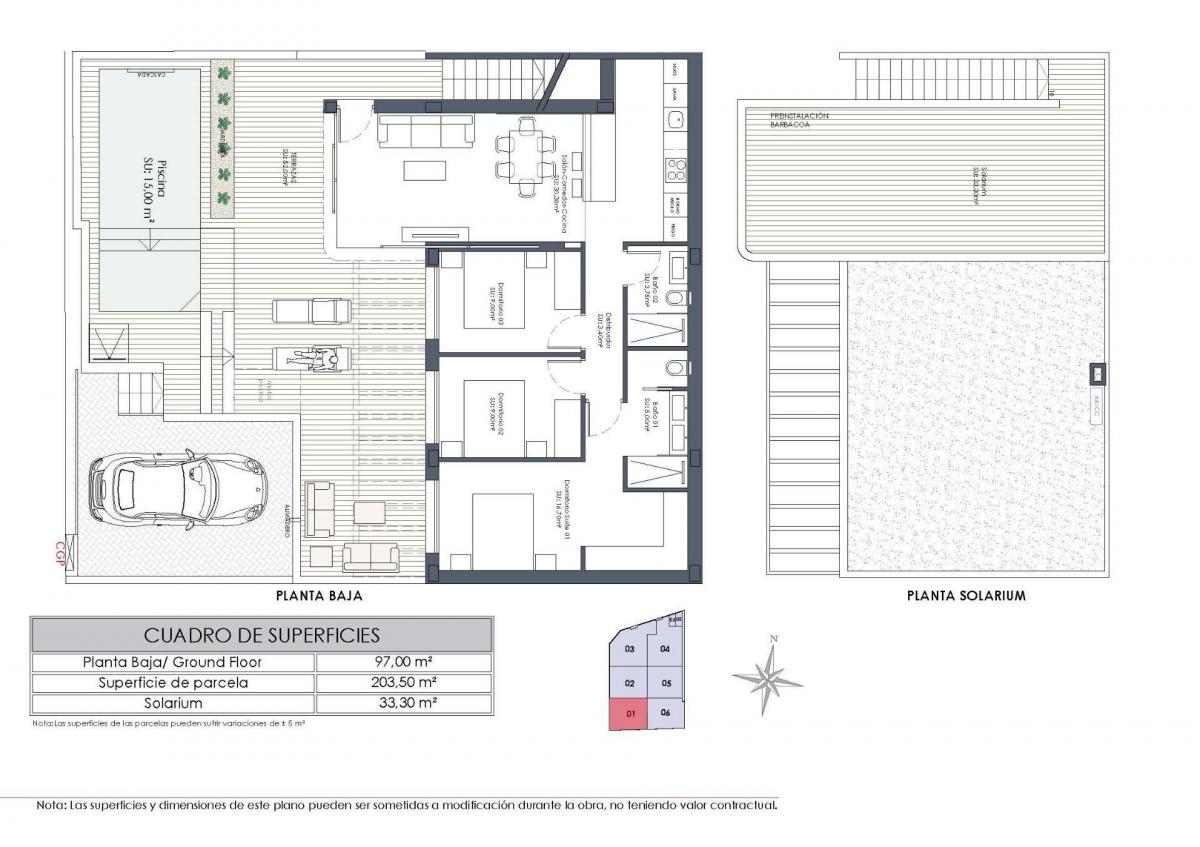Exclusive Residential Villas in a Peaceful SettingThis boutique residential development consists of just 6 new build townhouses with elegant ibiza style architecture, situated in the charming town of Dolores in the South of Alicante province. Set in a new expansion area very near to the town center, these homes offer a quiet residential environment while remaining within walking distance of local services such as shops, restaurants, supermarkets and medical facilities. Dolores is surrounded by the fertile countryside of Vega Baja, known for its relaxed atmosphere and excellent quality of life.Single Level Design with Spacious Outdoor AreasEach villa is designed on one single level to provide maximum comfort and accessibility. The interior layout includes an open-plan kitchen connected to a bright living and dining area, three spacious bedrooms and two modern bathrooms. Outside, each property features a private plot with terrace, landscaped garden, private swimming pool and an on plot parking space (except 2 units). A highlight of these homes is the generous private solarium, offering open views of the surrounding countryside and the perfect space to enjoy the Mediterranean climate all year round.Modern Finishes and Energy Efficient FeaturesThese new build villas are constructed with modern materials and quality finishes. Features include electric shutters, a complete interior and exterior lighting package, and bathrooms fitted with furniture, mirrors and shower screens. Hot water is provided through an efficient aerothermal system, enhancing energy efficiency and sustainability. The homes also include pre installation for ducted air-conditioning, allowing future owners to customize the climate system to their needs.Well Connected Location Near Beaches and GolfDolores enjoys an excellent location with easy access to the main coastal and leisure areas of the Costa Blanca. The sandy beaches of Guardamar del Segura and Torrevieja are approximately 12 km away, offering long promenades, natural dunes and a wide range of beach activities. Several well known golf courses such as La Finca, La Marquesa and Vistabella Golf are located within 10 to 15 km. Water parks and leisure attractions can be found nearby in Rojales and Torrevieja.Key Distances and Points of interestGuardamar and Torrevieja beaches are around 12 km away. Alicante Airport is approximately 30 km or twenty-five minutes by car, providing regular connections to major European cities. The city of Elche is about twenty kilometres away, while Alicante city center is around 35 km. Nearby marinas and ports in Guardamar and Torrevieja add to the lifestyle appeal.Your Mediterranean Home AwaitsThese exclusive ibiza style townhouses in Dolores offer modern living, privacy and an excellent location very near to beaches, golf and amenities. Contact us today for more information or to arrange a viewing and secure your new home on the Costa Blanca.