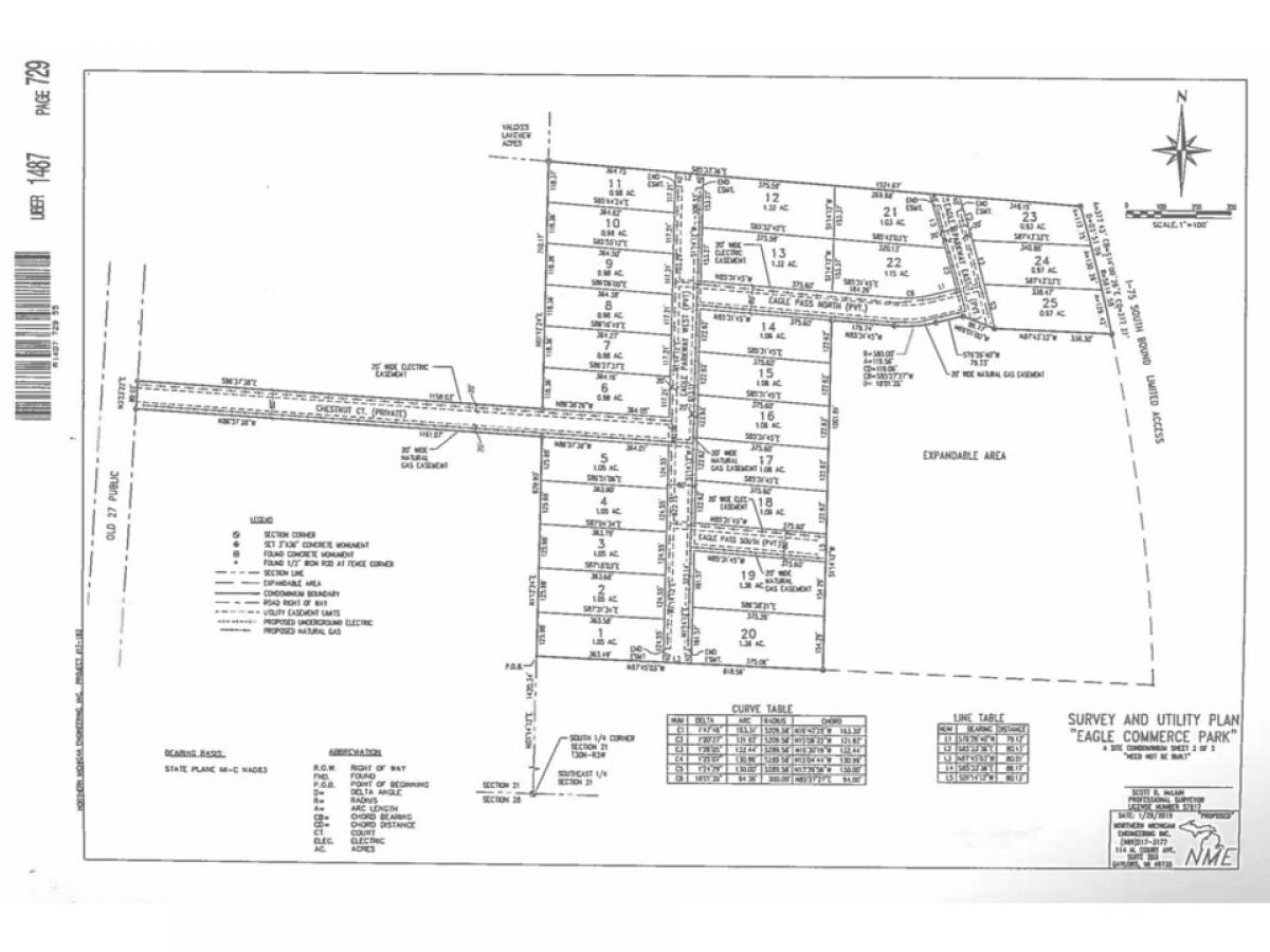 Capitalize on location and exposure and expand or start your business with 20+ acres and 1390 feet of premier I-75 frontage in Gaylord's newest B-3 zoned Industrial Park. Locally owned and developed, Eagle Commerce Park is outfitted with Class A roads, natural gas, fiber optic internet, and 3-phase electrical service. This section offers a blank slate, primed for future development. With an average annual daily traffic count of 33,000+ for this section of I-75 operate your business and be seen! Developer is offering build to suit options, with multiple projects completed recently. You do not want to miss out on this opportunity to grow with Gaylord! Call today for additional details and to arrange a tour!