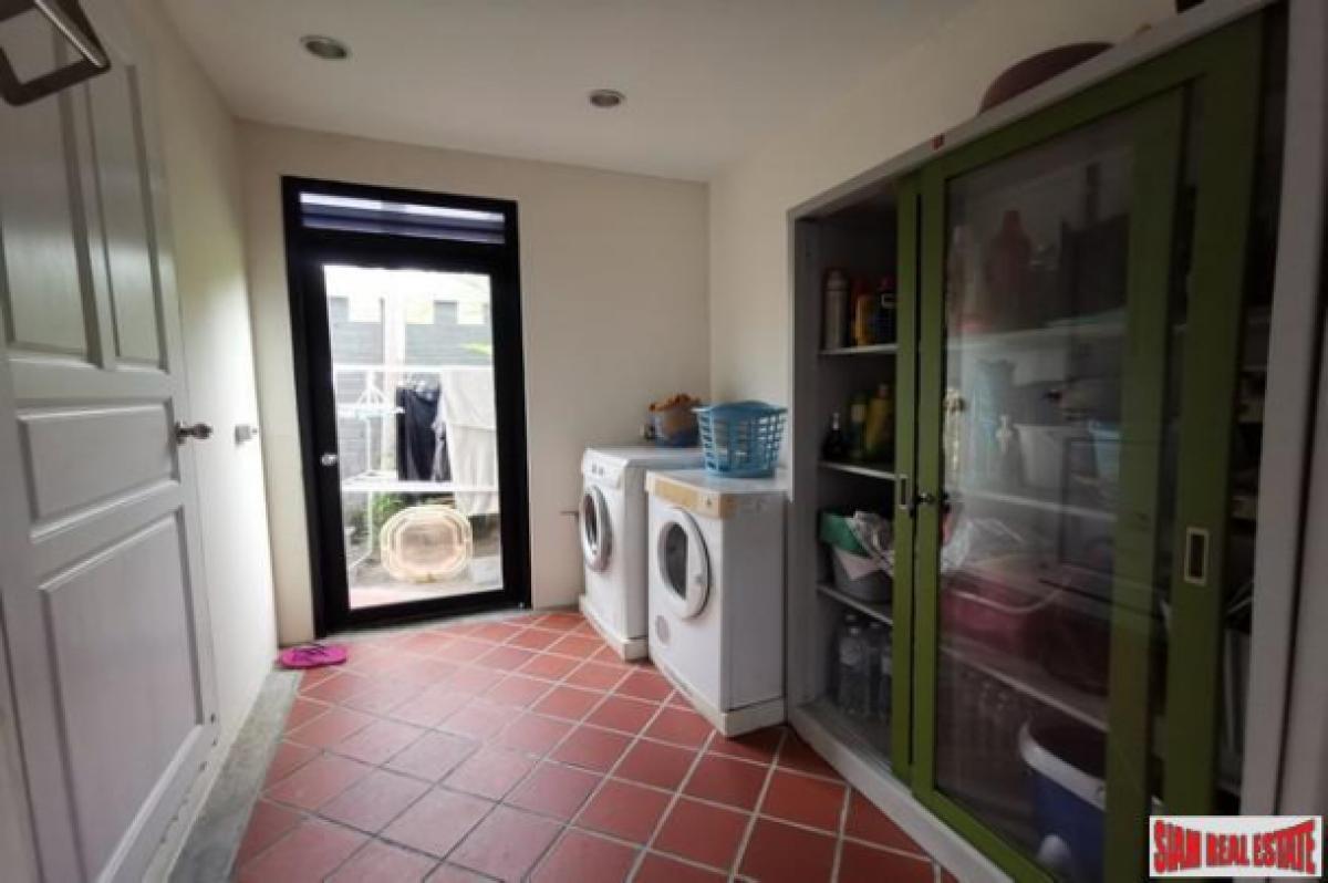 Featuring a very well-appointed detached Lagoon Villa at The Village @ Horseshoe Point. This characteristic property is very spacious with some 440 square meters of useful interior space. There are four bedrooms, three with ensuite bathroom, and one the bedrooms is currently being used as an office. The master bedroom, on the second floor, is spectacular with its 4-posted bed and wood-paneled dome ceilings, large walk-in wardrobe and en-suite bathroom. There is a fourth separate guest bathroom.The living plan is open and large with a big dining table and fully equipped European kitchen. The kitchen has lots of cabinets for storage and an elegant counter bar. There is a separate laundry and storage area.