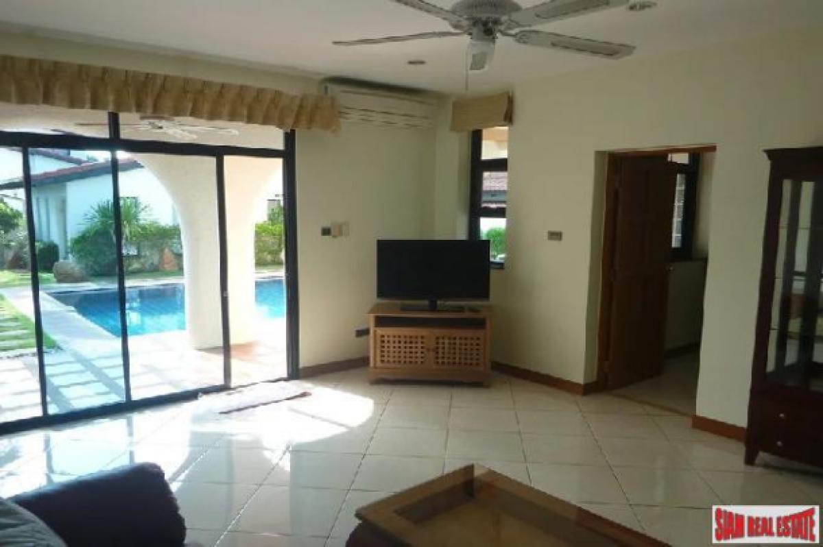The house is fully furnished including, internet, cable and satellite TV. Built by European builder with 30 years experience in Thailand. Double block walls effectively stop noise from neighbours and roof insulation keeps the house cool, 3-pin earthed electrics, built in fire/burglar alarm are just some of the features of this extremely well designed and constructed property.Located in the centre of a high quality village offering relaxed but secure living. Offering the freedom of a house, with the simplicity of a condo.