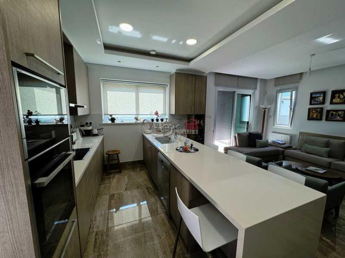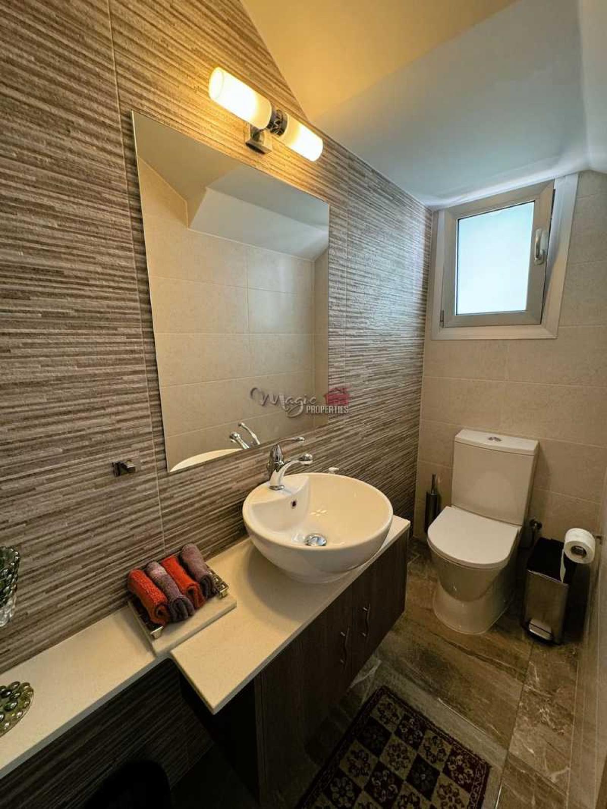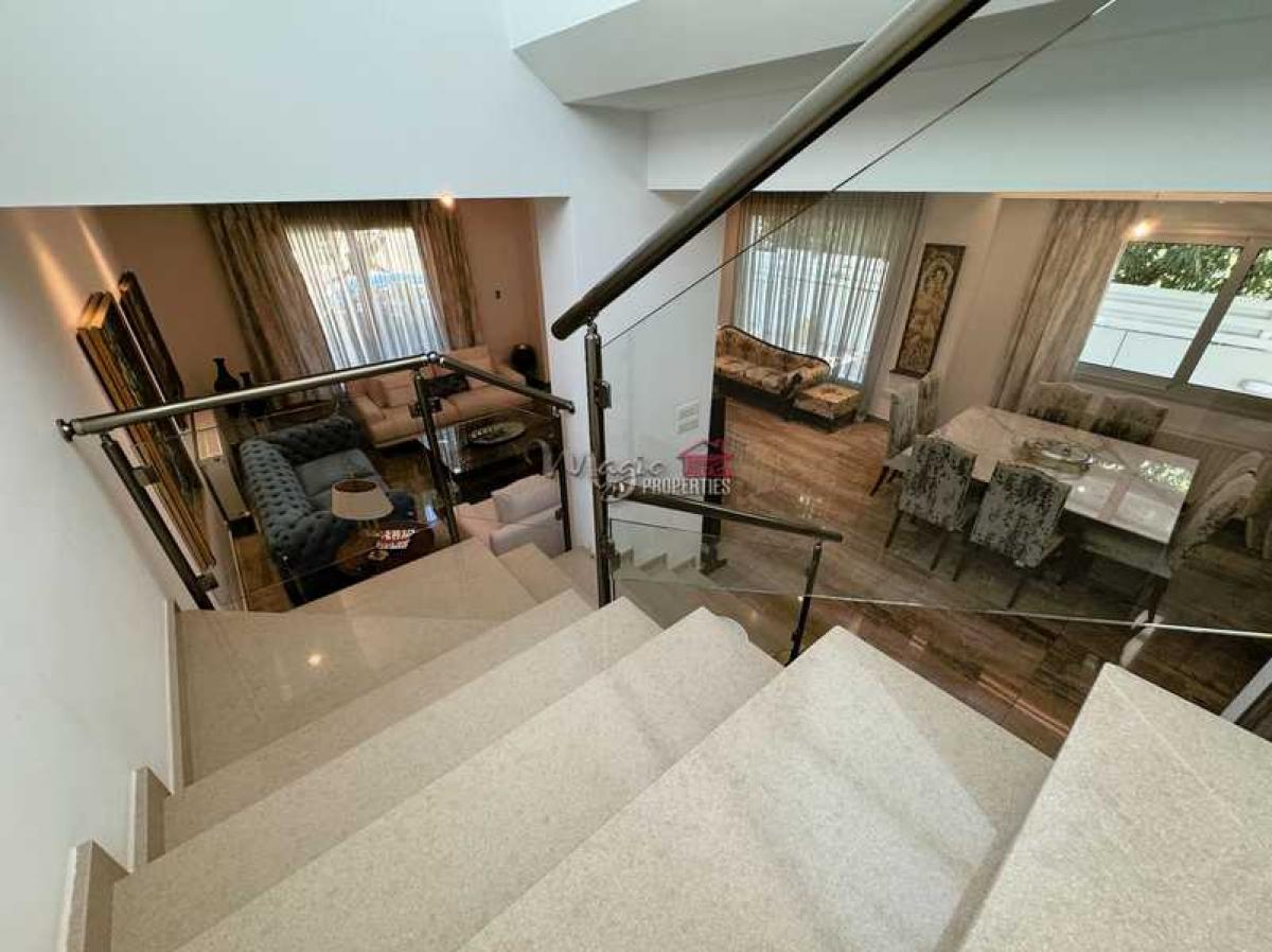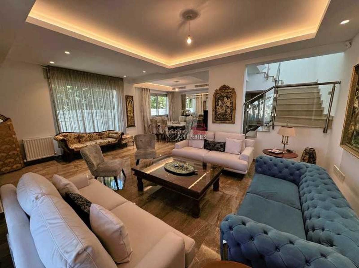 Resale 3 bedroom house + maids room with shower/wc in Ekali, Limassol.In ground floor you will find a spacious living room and dining table. Furthermore inside you entering the open plan kitchen area with another sitting area with comfortable couches. Also there is a nice guest toilet next to the stairs that leads to the upper floor.