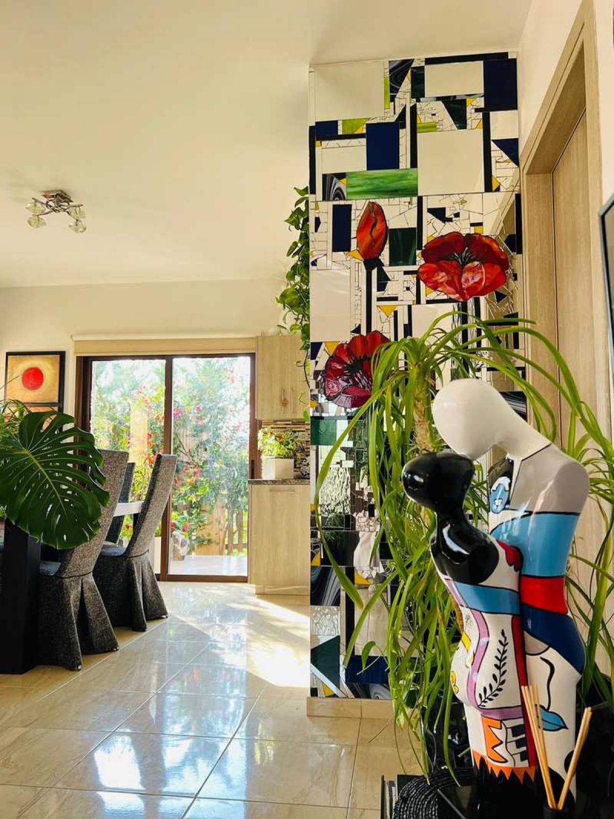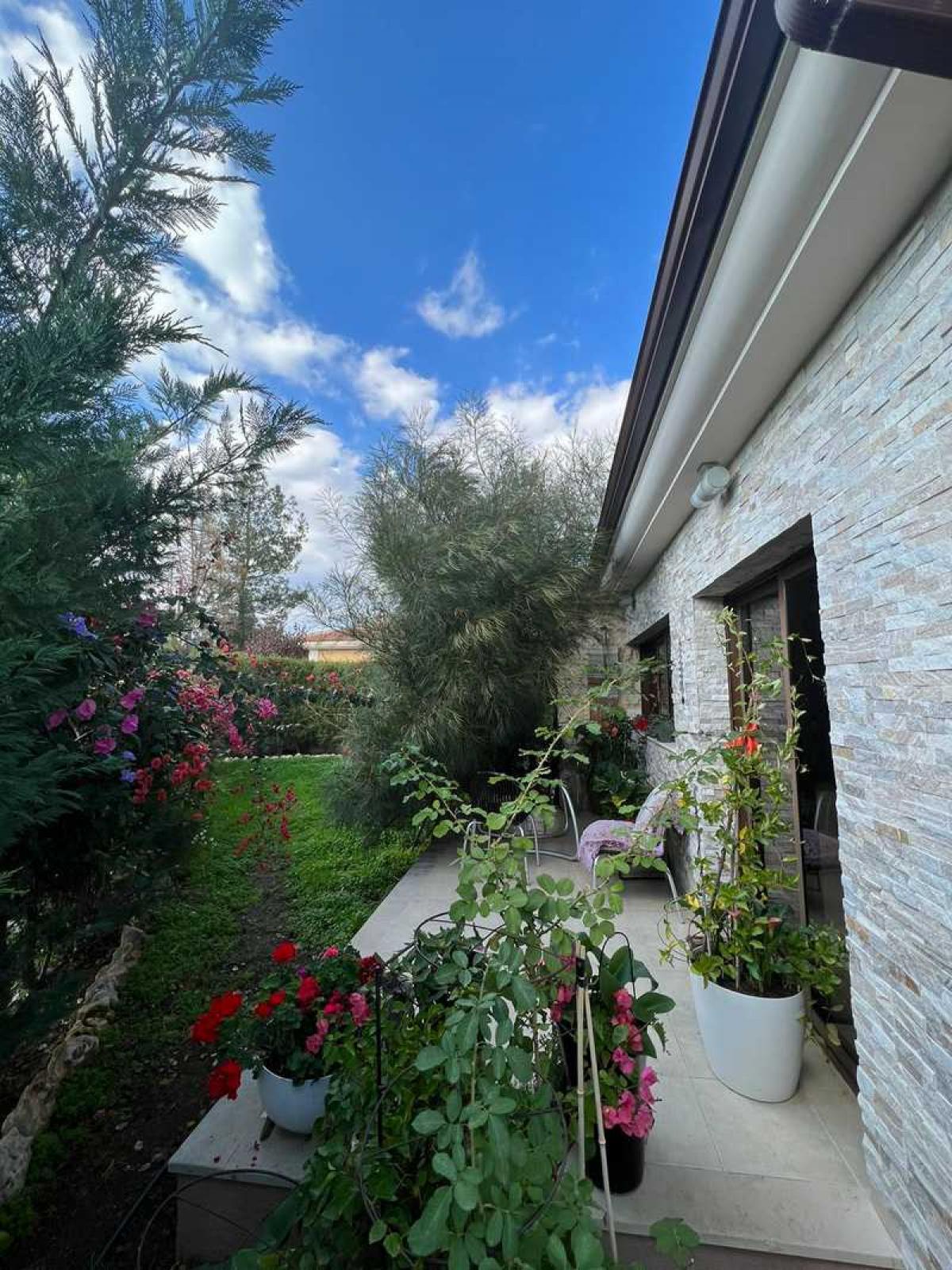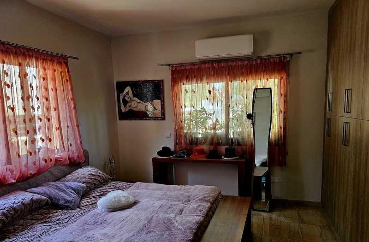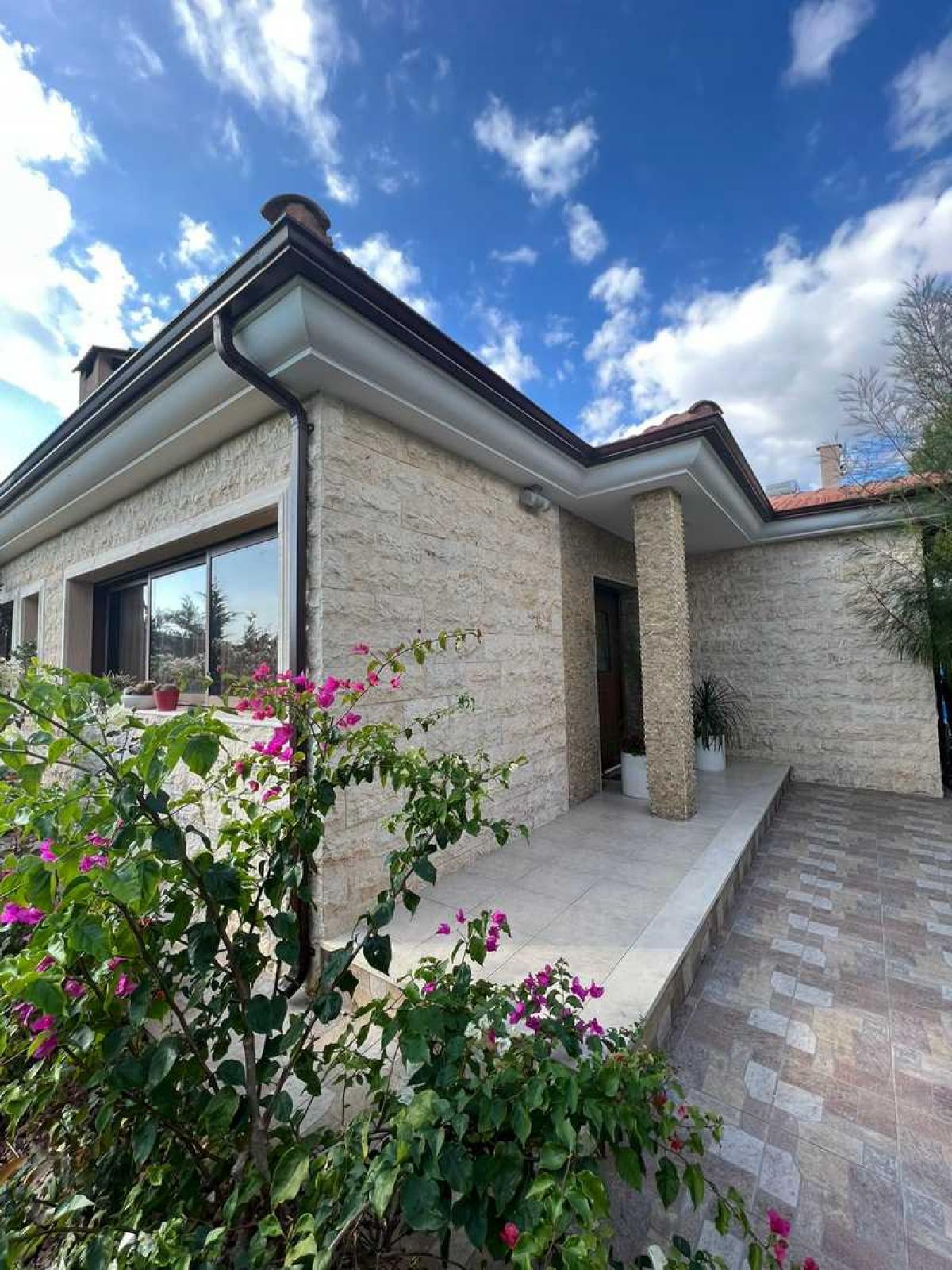 Lovely 12 -year- old 3 bedroom house in mountain village 15-30 minutes from the sea , with panoramic views at the edge of a village with late night supermarket, bakery, taverna very close by walking. House size is 130 sq. meters covered with a verandah; the plot is nearly 400 sq. meters. Uninterrupted view on most sides with a nice establishing garden. The house has a large master bedroom and two well-proportioned bedrooms. The lounge kitchen is open planned with fireplace and the kitchen is custom built with the latest appliances. Fully air conditioned, double glazed and the building is clad in Syrian sandstone for extra insulation. The house is easy to heat in winter and cool in summer because of the stone walls and glazing.Property area: 130 m2