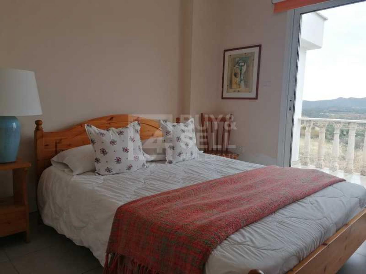 The plot alone is approximately 11.000 sqm. This is a 4 bedroom house with 3 bedrooms upstairs one of which is ensuite, big wardrobes, guest bathroom, big living room area, big kitchen with dining area, another small kitchen with laundry and a beautiful veranda, overlooking the mountains.