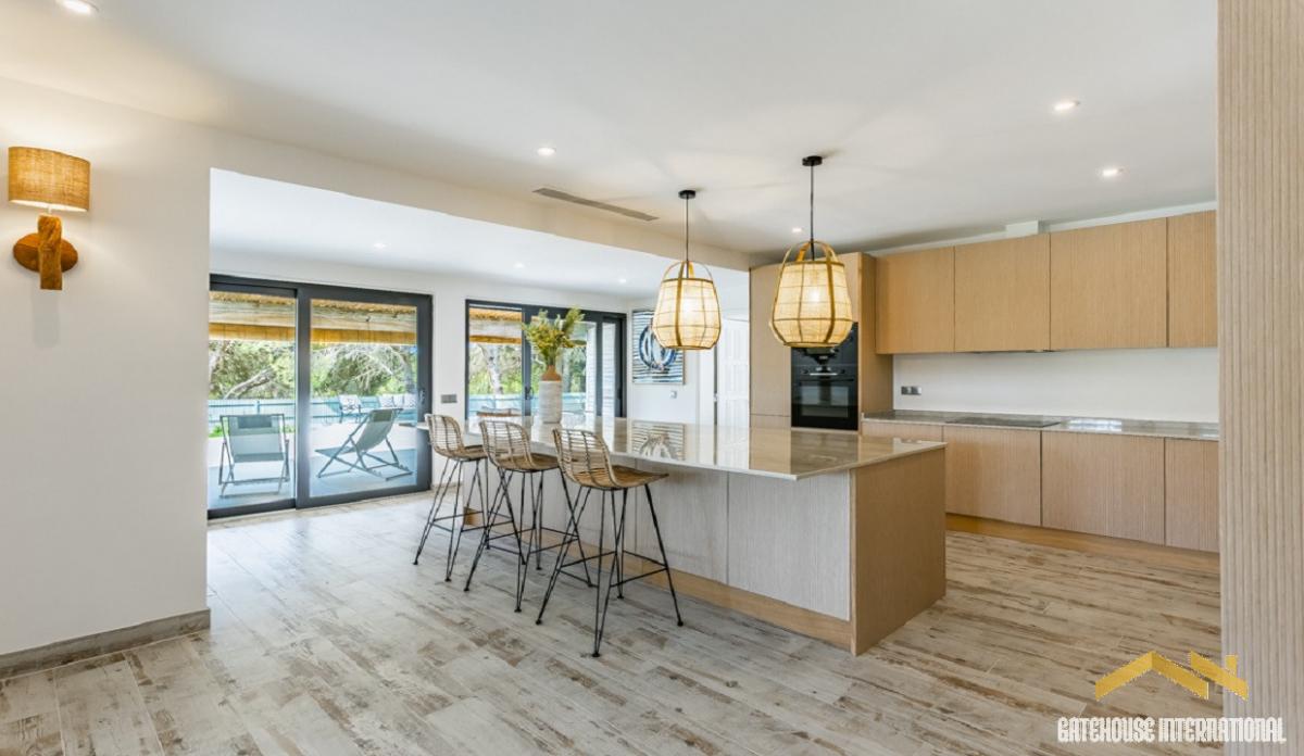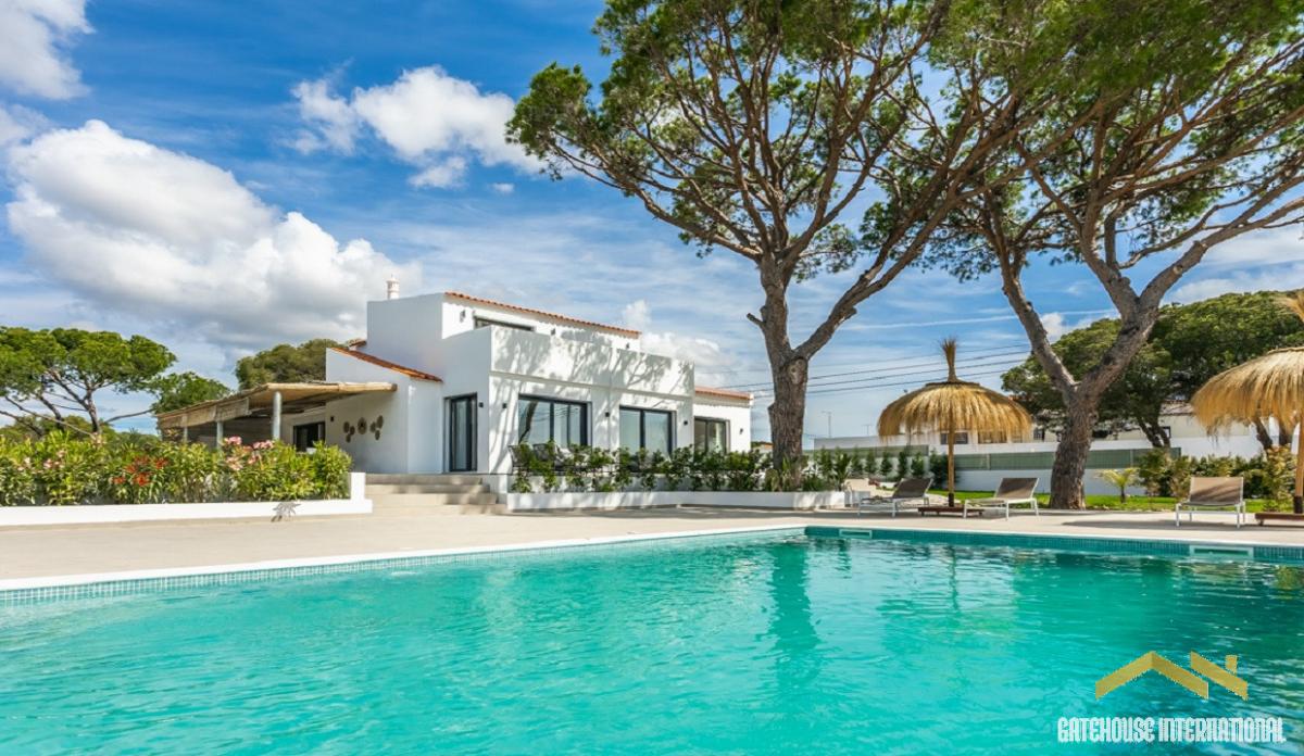 Detached Renovated 5 bed Villa Near Vale do Lobo Golf Algarve - the 200m2 villa within a plot of 2,320m2 with a south east orientation is located on the entrance to The Village development and has been extensively renovated and completed in 2025. The villa interiors are tastefully furnished with a, entrance, a visitors cloakroom, a living area includes a charming log-burning fireplace, a dining area, a fully equipped kitchen and breakfast room featuring premium Bosch appliances throughout, supported by a separate laundry room. The villa has five spacious en-suite bedrooms and the home benefits from electric underfloor heating, double glazing throughout, ducted air conditioning, and electric shutters. Outside, the landscaped garden are fitted with an automatic irrigation system plus a heated swimming pool. There is also ample outdoor parking, electric gates for added security, a shared borehole, a full alarm system, and solar panels for enhanced energy efficiency. in brief: - entrance - visitors cloakroom - living room - dining area - kitchen and breakfast room - laundry room - 5 bedrooms - 5 en-suites - ample parking - heated swimming pool