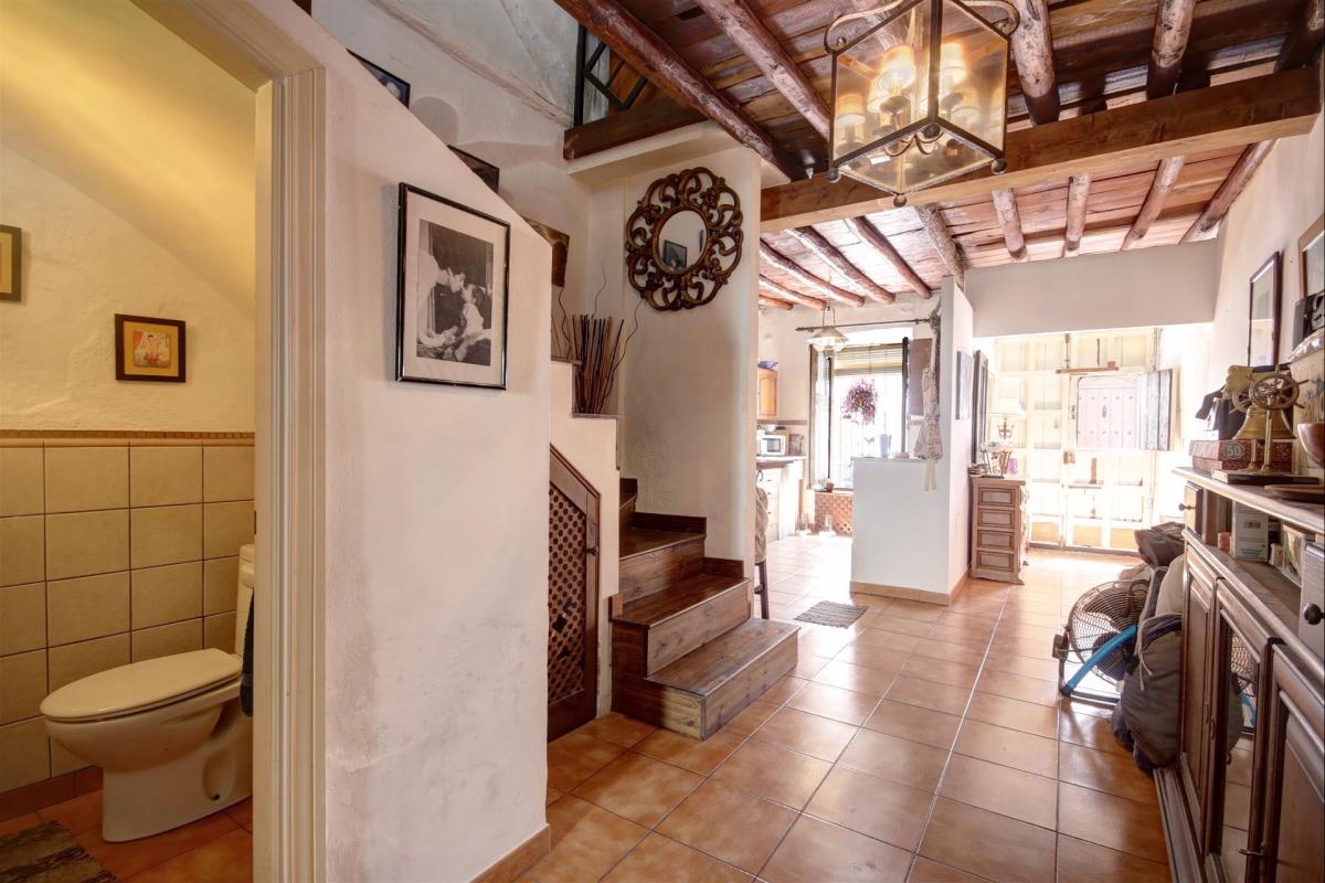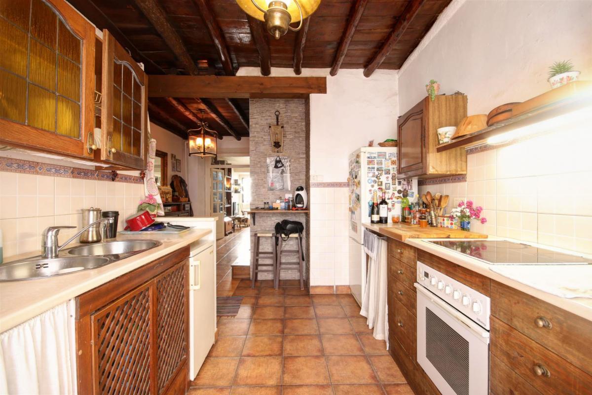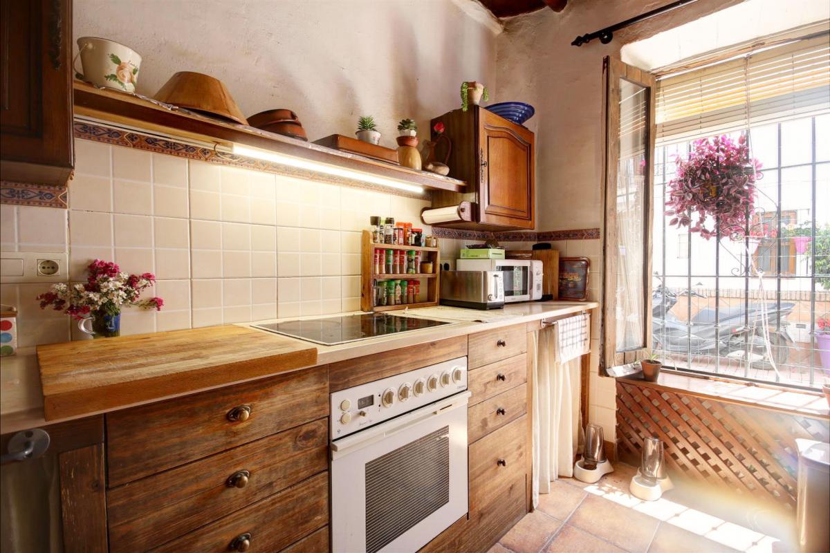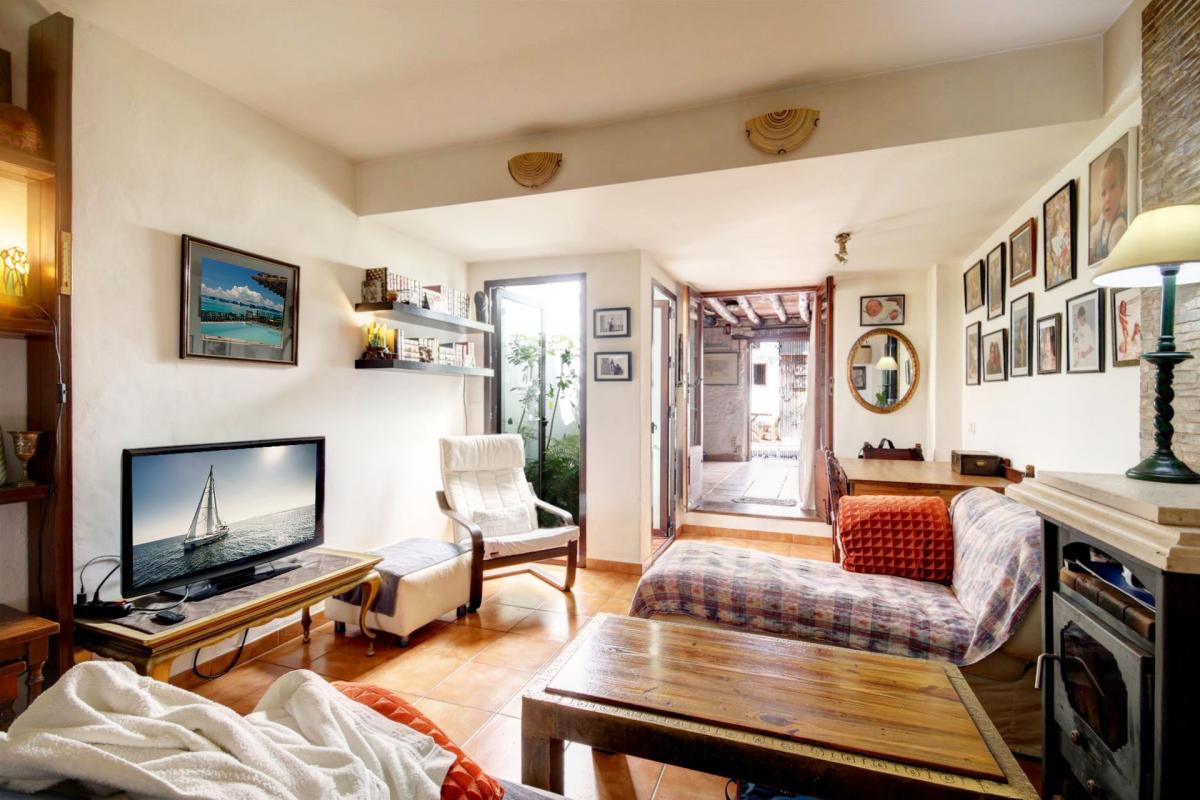 This charming property is located in one of the best areas within the old town, it is located only a couple of minutes walking to the beach and beside a beautiful square. The townhouse is distributed over 2 floors and conserves many traditional features such as wooden beams, a rustic charming patio and rock walls. The main entrance hallway is ample and has enough space for a wardrobe, alternatively, the kitchen which is beside the hallway, could be extended to incorporate this area. The living room and dining area is open plan and very spacious and it has a light-well in the centre which allows for natural light and fresh air. The main living areas lead into an additional room currently used as storage and office. From here you can access the charming ground floor patio which has an outer building used as a laundry room and a staircase leading to a terrace with views to the square. in addition the ground floor has a guest toilet located under the staircase.The internal staircase leads to the first floor which comprises; one large double bedroom with vaulted beamed ceilings, a spacious bathroom with shower place and bathtub, and a smaller double bedroom. There is a terrace on this level which is also used to access a further double bedroom with an en-suite bathroom. This room has a window looking into the patio below. The property was renovated 10 years ago with new installations for water and electricity; it's ideally situated close to local shops and convenience stores, and 100 metres from the largest and sandiest beach in Estepona. There is also approved permission from the town hall for the new owners to create a direct access into the patio from the square. This was obtained with the idea of creating a separate independent apartment of 1 bedroom and bathroom, and a separate kitchen, perfect for guests or short term rentals. Alternatively the property could be divided into 2 separate dwellings for rental purposes, and with some refurbishment it would be possible to make a boutique hotel.