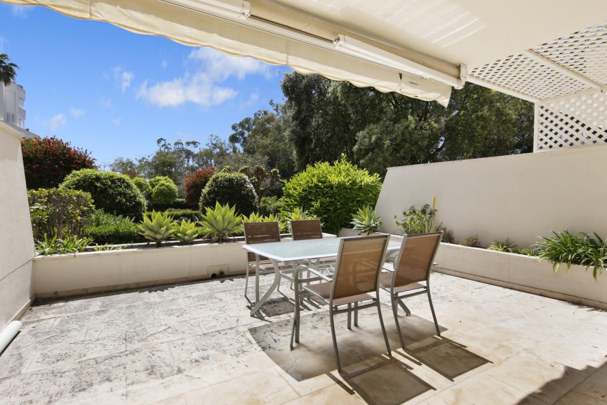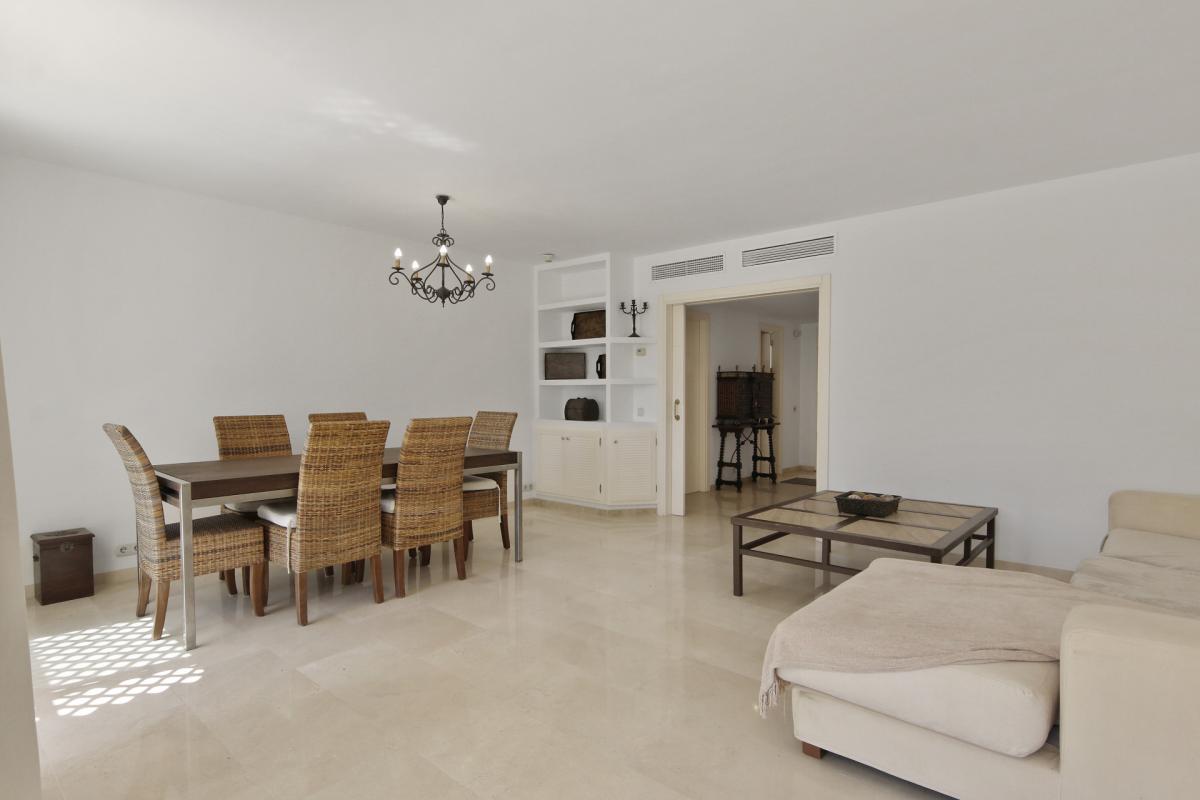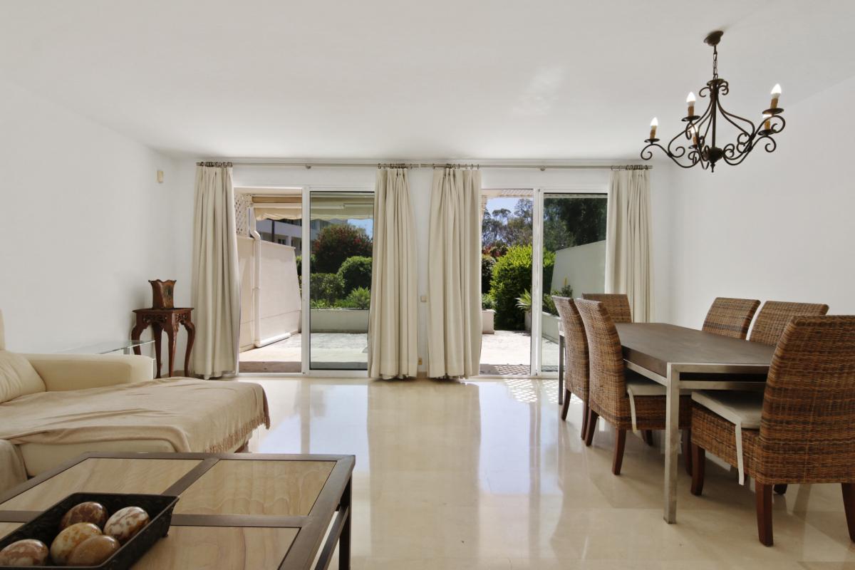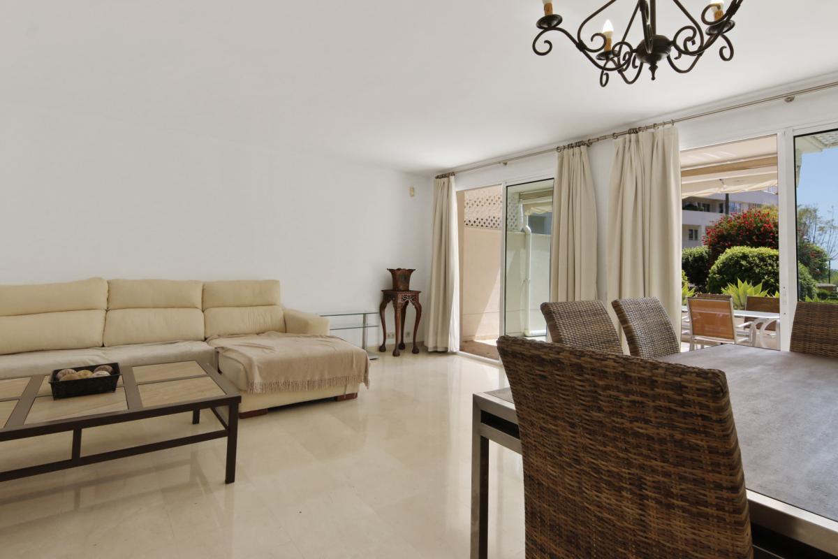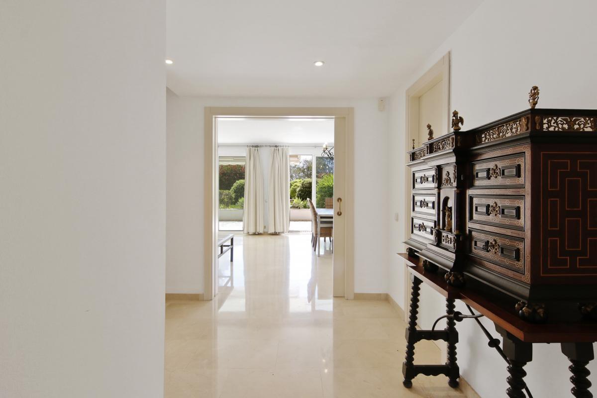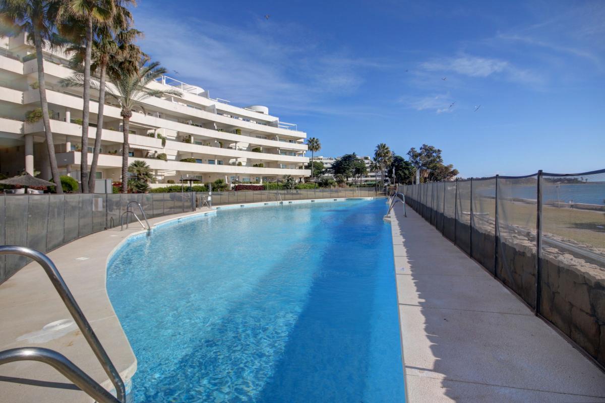 This nicely presented home is located in the beachfront community of Los Granados Playa, one of the most exclusive residential seafront communities in Estepona's New Golden Mile. Built in 2001, the property is the ideal place to make the most of the Costa del Sol lifestyle, being perfect for the buyer who loves to be near the beach and amenities while living comfortably in a prime development with tremendous value.An entry landing greets residents and guests upon entering the home, and leads to all the living quarters inside. To the left of the entrance is the fully fitted kitchen that offers ample space for a family breakfast table, and has a laundry room annex toward the rear. To the right of the entrance there is a guest cloakroom, while straight ahead is the large living room that further opens to the private terrace directly outside, with the south-facing orientation providing abundant natural light to the home. Upstairs there are three bedrooms, including the master suite that features a private terrace with partial sea views that overlook the garden and the two guest rooms on this level enjoy mountain and garden views toward the back of the community. Downstairs is an additional multi-purpose room that can be used as additional living space. There is also direct access to the underground garage, where 2 private parking spaces are included with the home.Being in Los Granados Playa, the home benefits from the highest levels of 24h gated security with manned presence. The luxurious community offers an excellent range of on-site amenities including two spectacular beachfront pools, in addition to a fully stocked gym. There is also a tennis court and 4 padel courts as well as a children's play area. Beautifully landscaped gardens surround the buildings in the community, and there is secure gated access to the beach and promenade directly in front, which is perfect for walking or biking to town or quickly reaching the selection of beach restaurants and chiringuitos in the nearby areas. By car, the centre of Estepona is just 10 minutes away, and 45 minutes to Malaga airport.