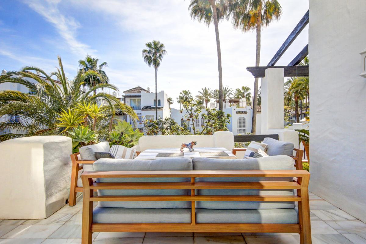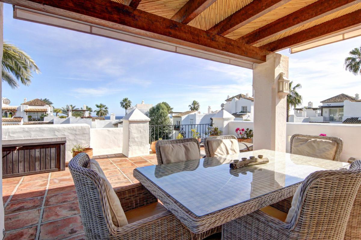 Located within the prestigious Alcazaba Beach community, this exquisite three bedroom duplex penthouse offers an unparalleled blend of elegance, comfort, and coastal charm. Situated near the Estepona town centre, renowned for its picturesque beaches and vibrant town center, this residence promises a lifestyle of exclusivity and relaxation.Upon entry to the second-floor apartment, a landing leads to all areas within. To the left, a recently upgraded, fully equipped kitchen showcases modern design and premium appliances. Straight ahead is the spacious living room which is centrally positioned and serves as the heart of the home, featuring a dining area and windows that flood the space with natural light while offering direct access to the main terrace.A hallway to the right of the living room leads to the master bedroom, which opens seamlessly to the main terrace of the apartment. The hallway also accesses an additional room currently used as a home office, as well as a completely renovated bathroom. To the rear of the living room, an additional guest bedroom provides a haven of comfort and privacy, complete with its own upgraded bathroom and access to a private terrace overlooking the landscaped grounds of the community. Upstairs, a spectacular solarium awaits, accessible from the main terrace. Encompassing the same footprint as the apartment itself, the solarium offers partial sea views and lush garden vistas, providing an idyllic setting for outdoor entertaining or soaking up the sun year-round. A covered area with a built-in BBQ and summer kitchen adds to the home's appeal, offering an ideal setting for outdoor living and entertaining.Packed with resort-like facilities, Alcazaba Beach residents enjoy access to seven pools, multiple tennis and paddle tennis courts, and an on-site beachfront restaurant. With direct access to the promenade and Estepona's charming town center mere minutes away, every convenience is within reach. Additionally, the community's 24-hour gated access ensures peace of mind and security for discerning homeowners.Conveniently located just a short drive from the town center and premier golf courses, and a 45-minute drive from Malaga airport, this remarkable duplex penthouse presents an exceptional opportunity to embrace a life of luxury and leisure on the sun-kissed shores of Estepona.