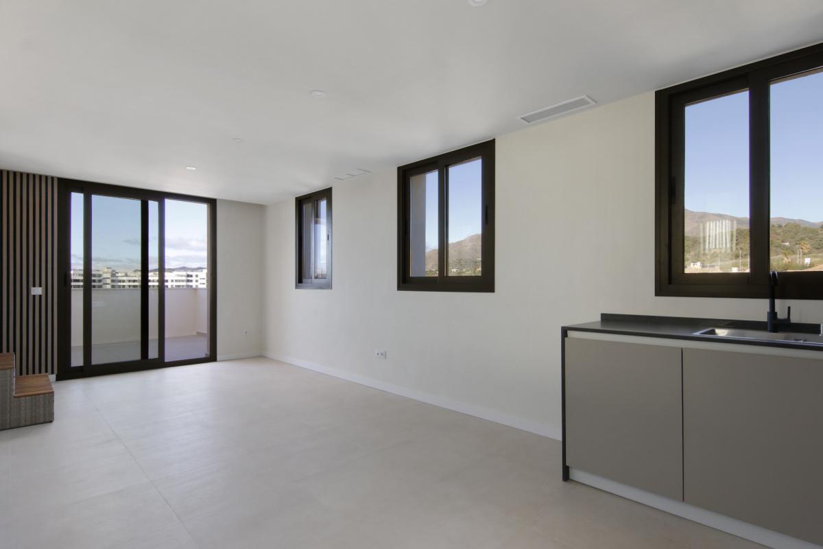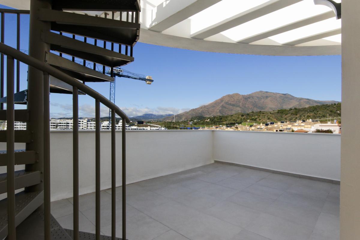 introducing a stunning brand-new duplex penthouse perfectly situated in the heart of Estepona. Located within the brand new Green Mountain development, this contemporary style residence offers a spacious private solarium complete with its own pool and excellent sea views.All homes in this newly built community include a private garage and storage room. Set in one of Esteponas most sought-after areas, Green Mountain enjoys a prime position just five minutes from the old town and the beach, surrounded by all essential services. The development features beautifully landscaped gardens, a communal swimming pool, a fully equipped gym, and a modern coworking areacreating an exceptional living environment on the Costa del Sol.inside, the penthouse showcases an open-plan layout that seamlessly connects the kitchen, dining, and living areas into one bright, inviting space. Floor-to-ceiling glass doors open onto a generous main terrace, leading up to the expansive rooftop solarium via an exterior staircase. From here, you can enjoy panoramic sea and mountain views, unwind by your private pool, and take in the Mediterranean sunshine.The developments penthouses are designed with a refined modern aesthetic, complemented by ample communal spaces and premium amenities that provide all the comforts of a high-end residential complex.Just a short walk from Esteponas charming old town and its golden beaches, Green Mountain is surrounded by parks, a sports center, schools, and an auditorium. Estepona itself retains the character of a traditional Andalusian villagewith flower-lined squares and whitewashed houseswhile offering all the conveniences of a modern coastal destination, including golf courses and a wide range of leisure activities.