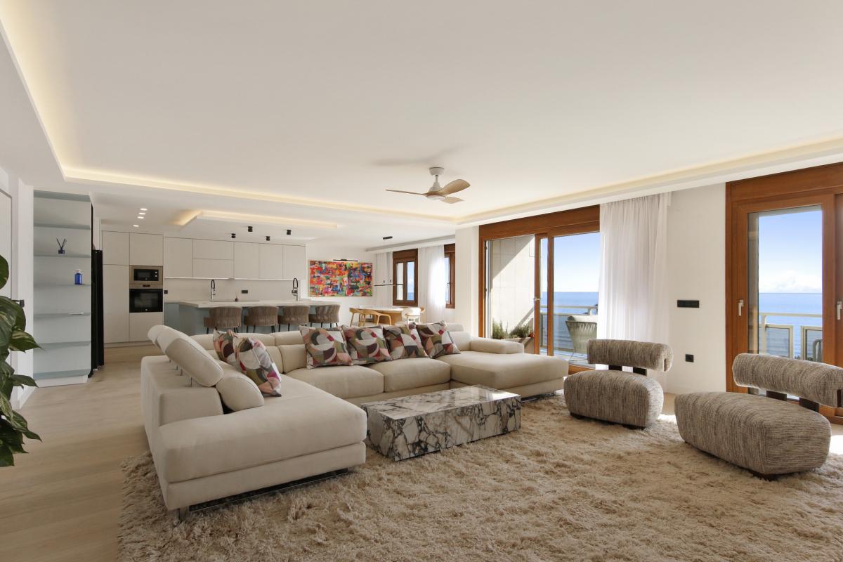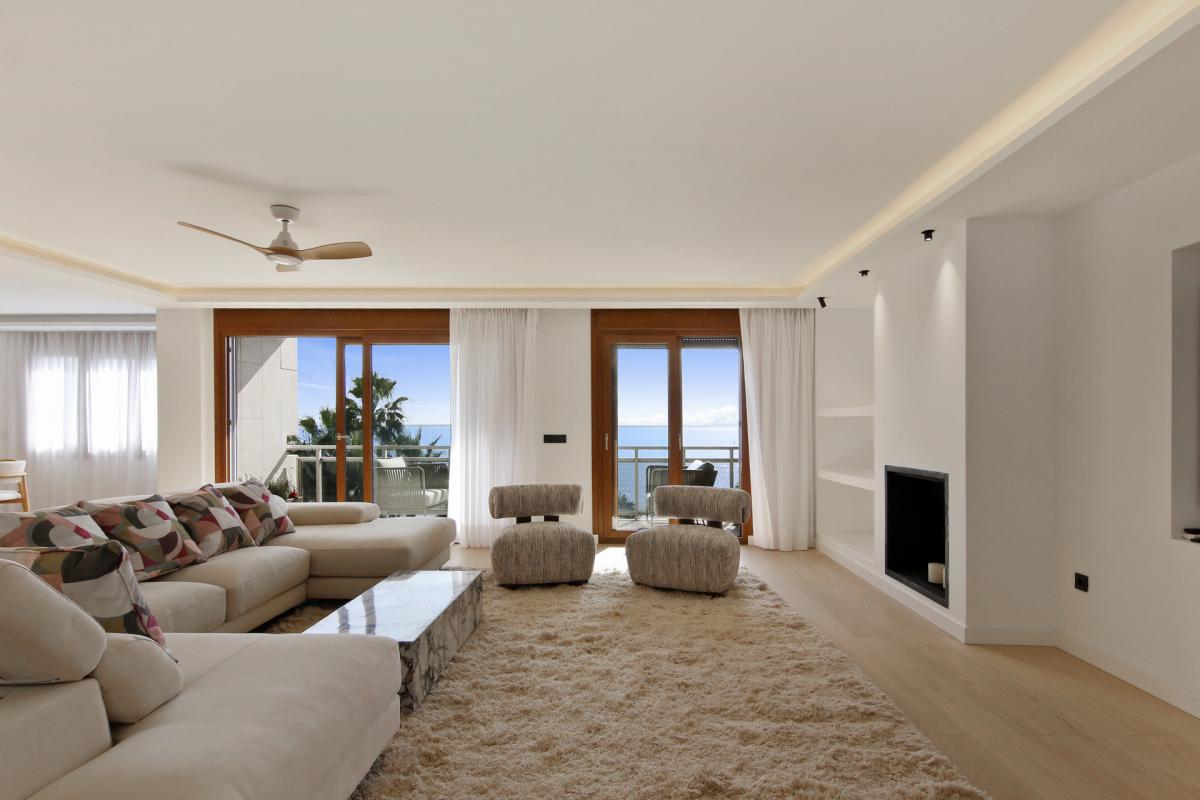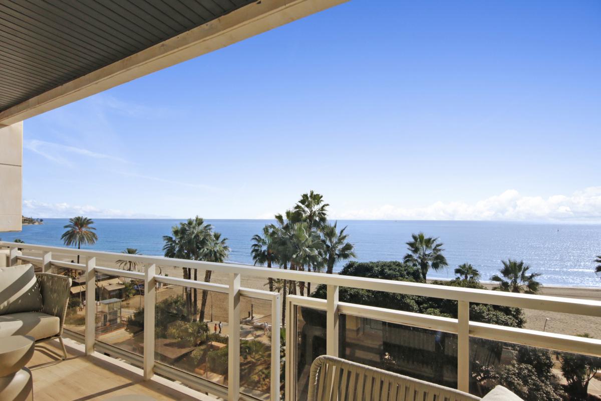 Commanding an unparalleled position directly on Esteponas beachfront, this remarkable fifth-floor penthouse epitomizes coastal luxury and refined contemporary living. Recently reimagined through a complete, top-to-bottom renovation, the residence combines two apartments into one expansive sanctuary offering a rare sense of space, sophistication, and seamless modern comfort.Every detail of this home has been meticulously crafted using only the finest materials and finishes. Enter the home to arrive at an impressive open-plan living area that flows effortlessly between the lounge, dining, and designer kitchen. Floor-to-ceiling glass doors instantly reveal the superb sea views outside and flood the space with natural light. This central space opens to a spacious terrace the perfect setting to relax or entertain while enjoying breathtaking, uninterrupted views of the Mediterranean.The state-of-the-art kitchen features premium appliances, a generous central island, and elegant finishes that make it as functional as it is stylish. A separate, fully equipped laundry room adds convenience and discretion.A hallway leads to three well designed bedroom suites, each with beautifully appointed en-suite bathrooms and picturesque views stretching across Esteponas charming old town to the Sierra Bermeja mountains. The master suite enjoys its own private terrace a peaceful retreat overlooking the historic heart of the city. A guest toilet in the hallway completes the interior of the penthouse.Positioned on the front line of the beach, this exceptional residence offers the ultimate Estepona lifestyle just steps from golden sands, vibrant beach clubs, and an array of acclaimed restaurants and boutiques. Within minutes, you can explore the flower-lined streets of the old town, play world-class golf courses, or reach Malaga airport in under an hour.