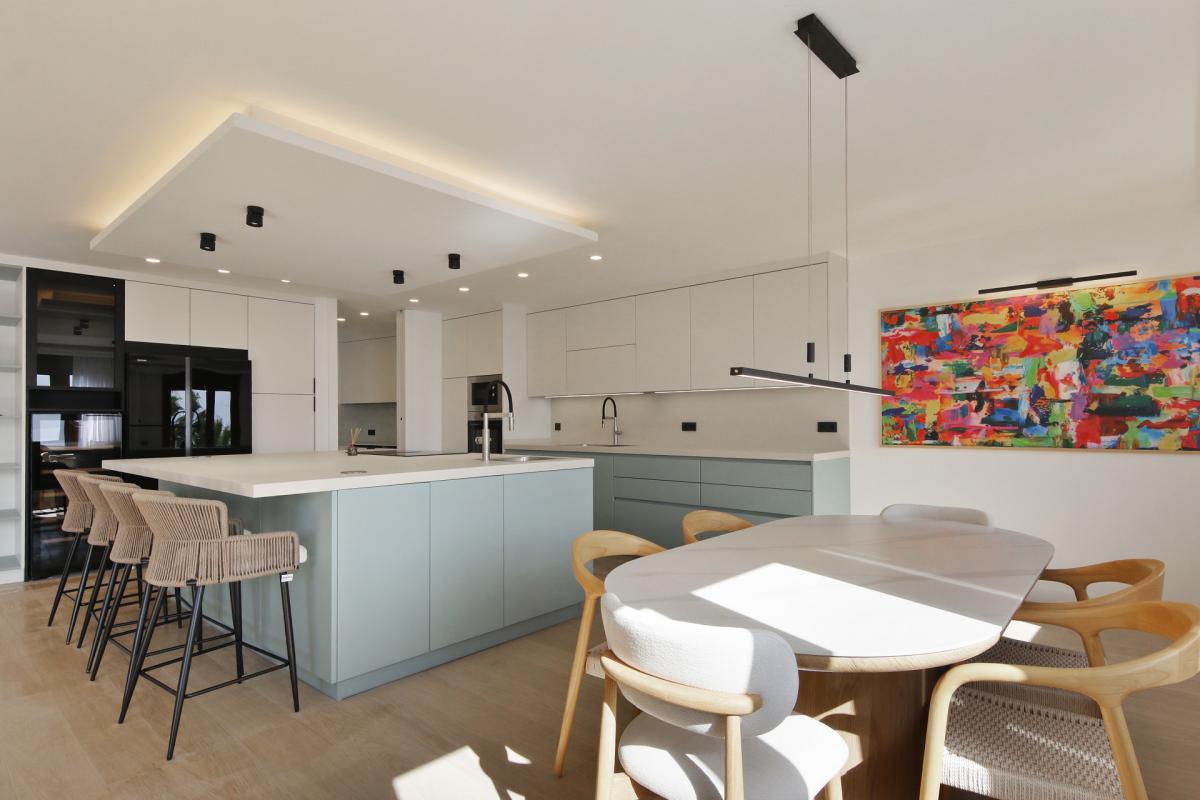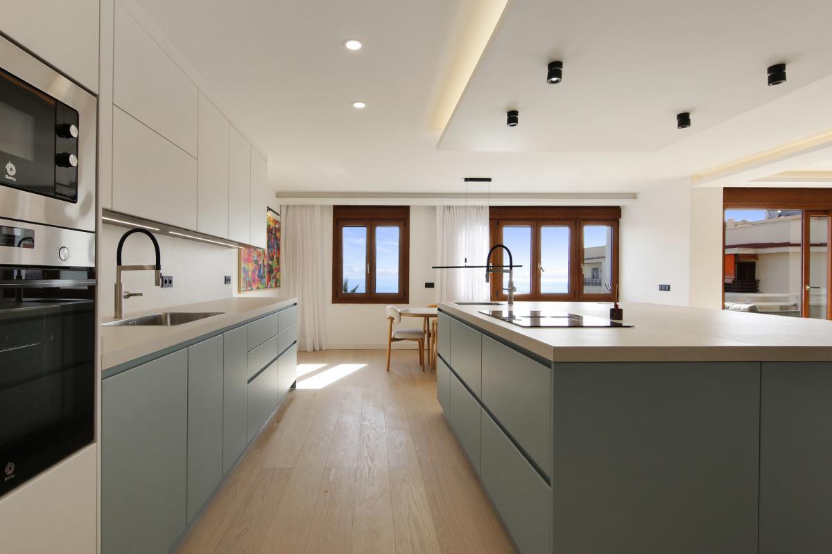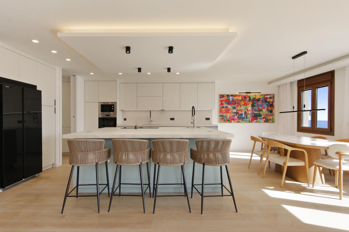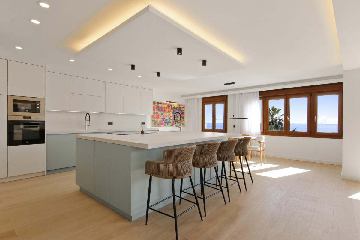 Commanding an unparalleled position directly on Esteponas beachfront, this remarkable fifth-floor penthouse epitomizes coastal luxury and refined contemporary living. Recently reimagined through a complete, top-to-bottom renovation, the residence combines two apartments into one expansive sanctuary offering a rare sense of space, sophistication, and seamless modern comfort.Every detail of this home has been meticulously crafted using only the finest materials and finishes. Enter the home to arrive at an impressive open-plan living area that flows effortlessly between the lounge, dining, and designer kitchen. Floor-to-ceiling glass doors instantly reveal the superb sea views outside and flood the space with natural light. This central space opens to a spacious terrace the perfect setting to relax or entertain while enjoying breathtaking, uninterrupted views of the Mediterranean.The state-of-the-art kitchen features premium appliances, a generous central island, and elegant finishes that make it as functional as it is stylish. A separate, fully equipped laundry room adds convenience and discretion.A hallway leads to three well designed bedroom suites, each with beautifully appointed en-suite bathrooms and picturesque views stretching across Esteponas charming old town to the Sierra Bermeja mountains. The master suite enjoys its own private terrace a peaceful retreat overlooking the historic heart of the city. A guest toilet in the hallway completes the interior of the penthouse.Positioned on the front line of the beach, this exceptional residence offers the ultimate Estepona lifestyle just steps from golden sands, vibrant beach clubs, and an array of acclaimed restaurants and boutiques. Within minutes, you can explore the flower-lined streets of the old town, play world-class golf courses, or reach Malaga airport in under an hour.