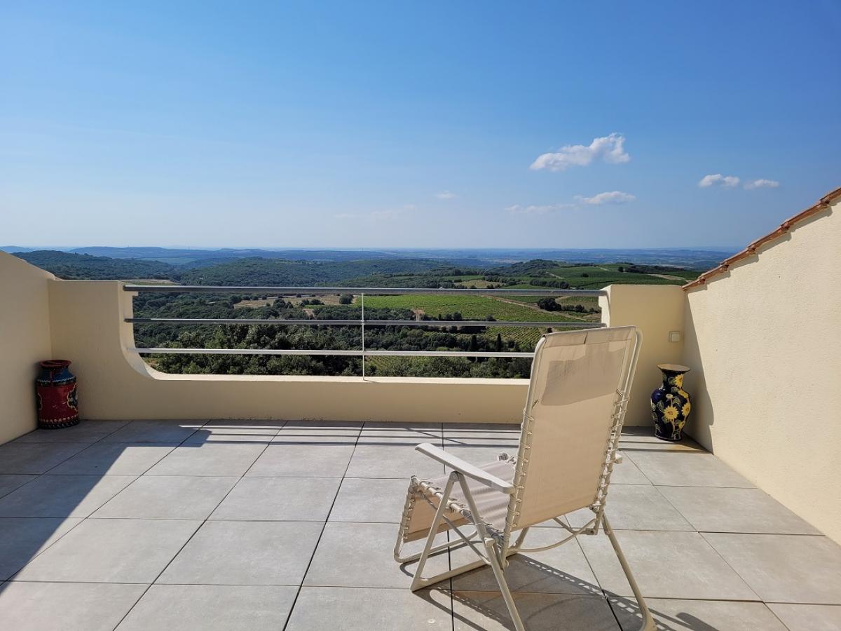 Between sea and mountains, charming village with some amenities less than 10 minutes from all shops and Bedarieux, 25 minutes from Beziers and the highway, 35 minutes from the beaches.On the height of the village, in a peaceful natural very private environment, superb villa offering 130 m2 of living space including 3 bedrooms and various terraces with breathtaking views, plus a garage. The house is located on a 2746 m2 plot that could accept a pool. A real coup de cœur !