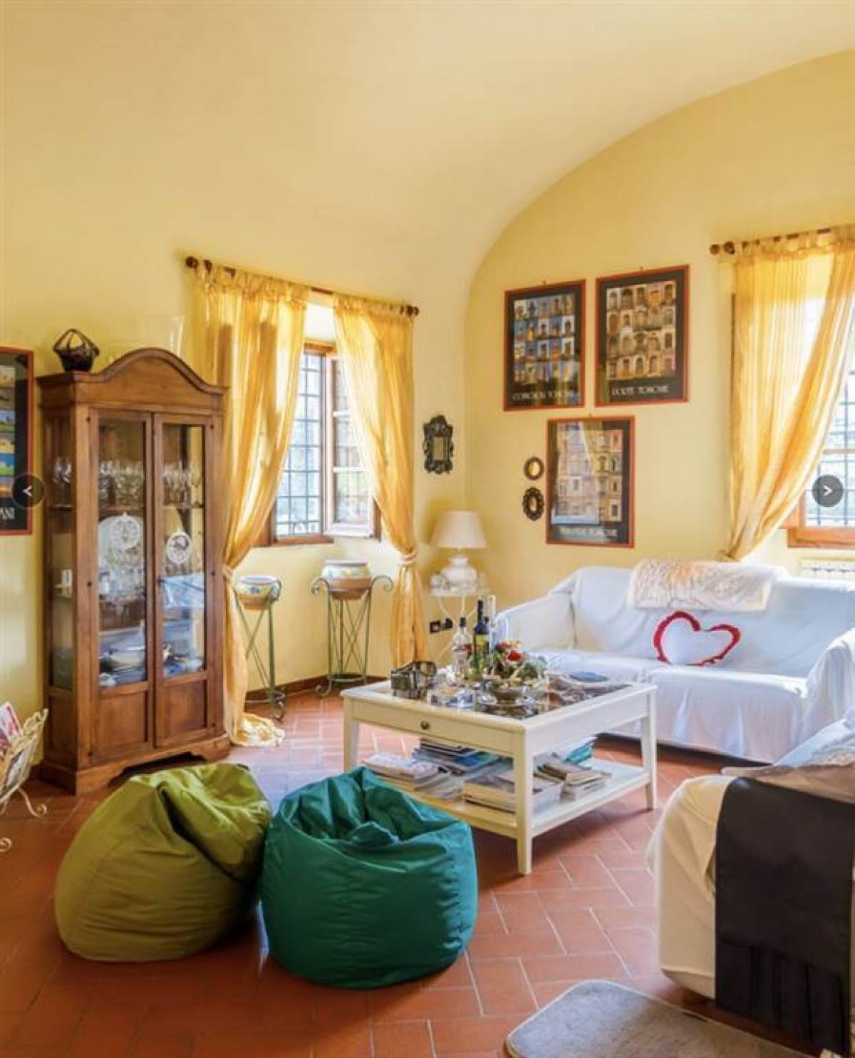 Traditional Tuscan features: stone fireplaces, wooden beams, antique terracotta floors
