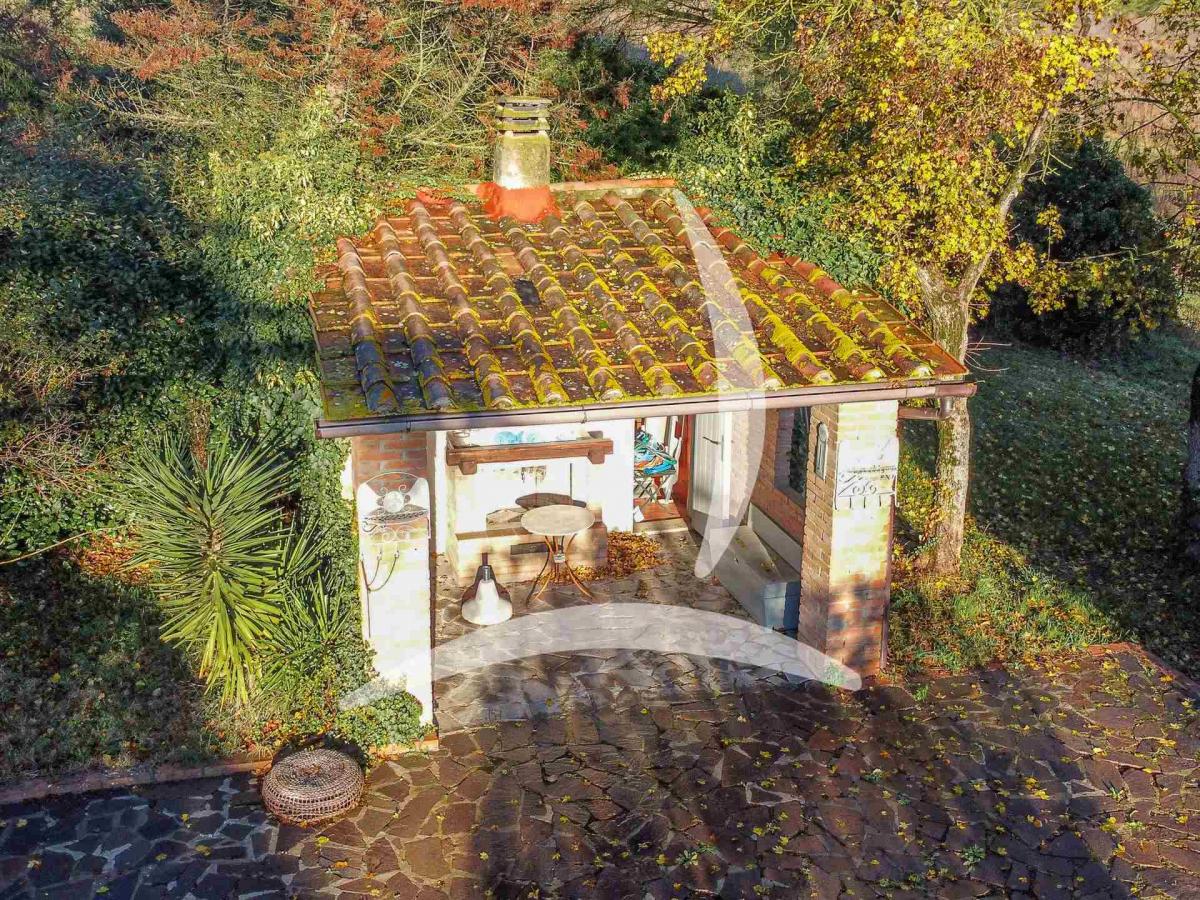 The house is fully furnished, except for a few pieces of furniture, and is ready for immediate occupancy. Outside, in addition to the pool, which is in excellent condition, there is a 2970 sqm garden surrounding the house, an annex that can be converted into a garage or room with bathroom, a pergola, and a covered porch attached to the external staircase.