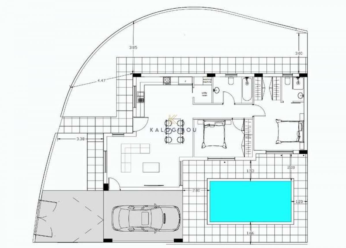 Two Bedroom Bungalow with swimming pool in Frenaros Village, Famagusta. The village of Frenaros is located in the Ammochostos district. The village takes its name from the Lusignan monks that lived in the nearby monastery of Panagia of Hortakion, and were called 'Fremenors'. The Byzantine churches of Agios Andronikos and the Archangelos Michael, which date back to the 12th century, and the 15 century church of Agia Marina with its interesting frescoes, are three important sights.Beautiful Bungalow for sale in Frenaros, in Famagusta. The house consists of an open plan kitchen, with dining and living area, a utility room, a main bathroom, 2 bedrooms, one en suite shower and wc in the master bedroom. Externally there is covered veranda, garden, a 6x3 swimming pool and covered parking.
