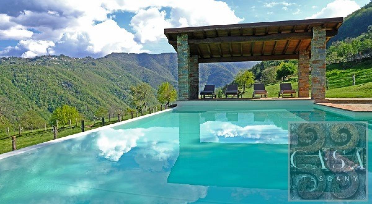 This beautiful property in Garfagnana to the north of Castelnuovo, in the Lucca province of Tuscany is made up of three houses joined together. In perfect condition, it offers a swimming pool and 1.5 ha of land.Totally renovated a few years ago maintaining the rustic Tuscan style with exposed stone exterior, and interiors in wood and natural materials, it offers a real elegant and welcoming charm.