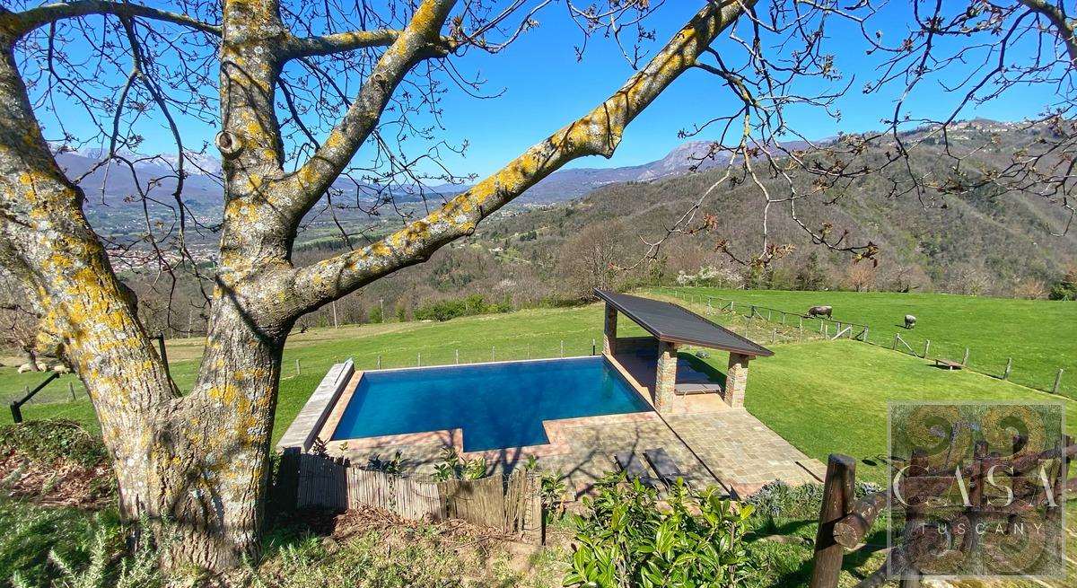 Completely restored, located on the top of a sunny and panoramic hill near a characteristic medieval village in the heart of the Garfagnana. The view extends over the surrounding mountains and hills. In total privacy it is the ideal place to live in peace.