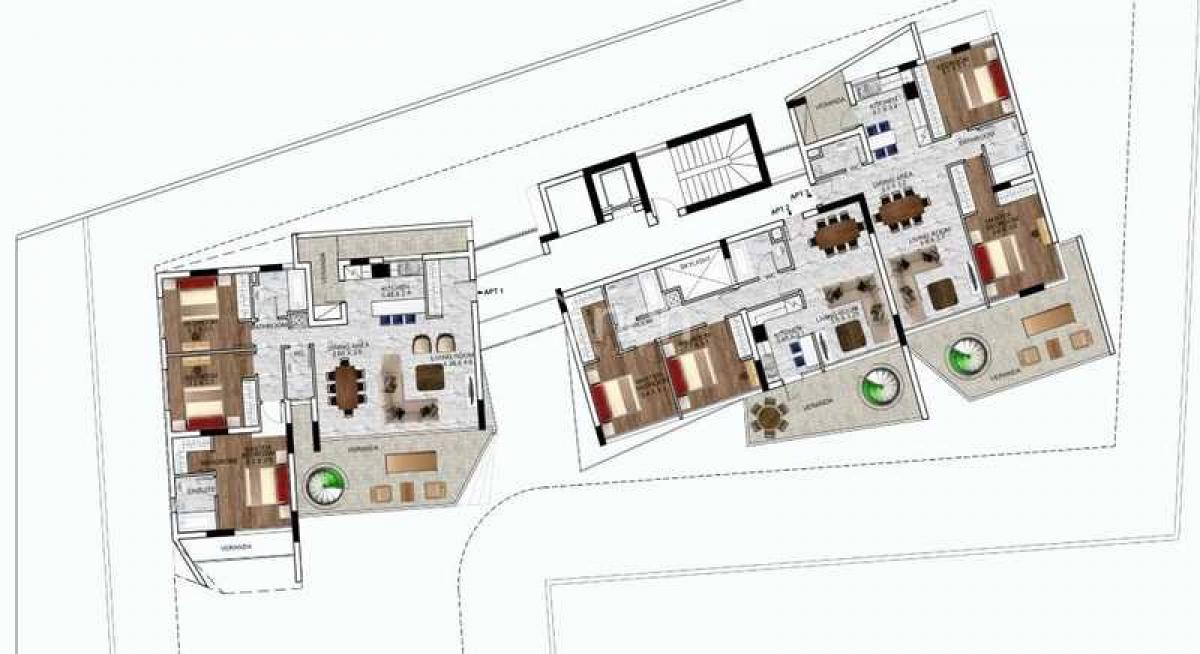 Three bedroom apartment for sale in Germasogeia, Limassol. It will have 118m2 of internal area with 32m2 of covered veranda and 32m2 of roof garden.The building also comprises a neatly landscaped garden in front, as well as a common swimming pool and deck area.