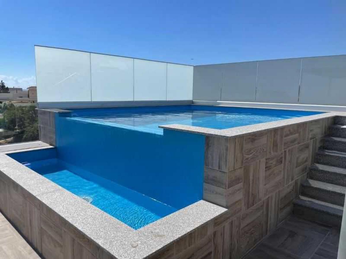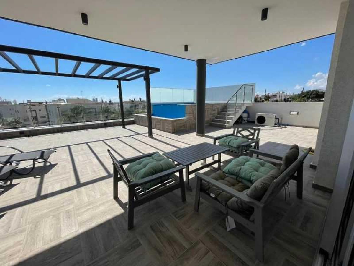 This brand new luxury Penthouse is for sale by Owner. Located perfectly for easy access to both highway to Larnaca and Paphos, but also to city center, beach area, mountains.Both sea view and mountain view available as it cover a full floor (the last floor) and a huge terrace with a private swimming pool and sun-beds. Everything is new from kitchen appliances to smart TV, AM, external rollout for perfect sleep. Great place to relax but also party.