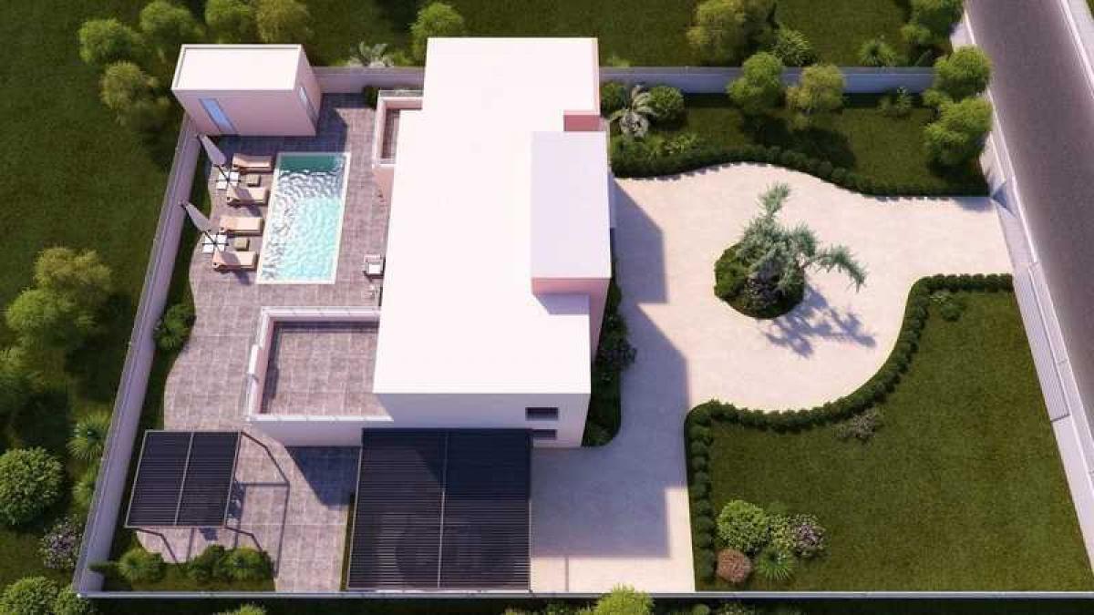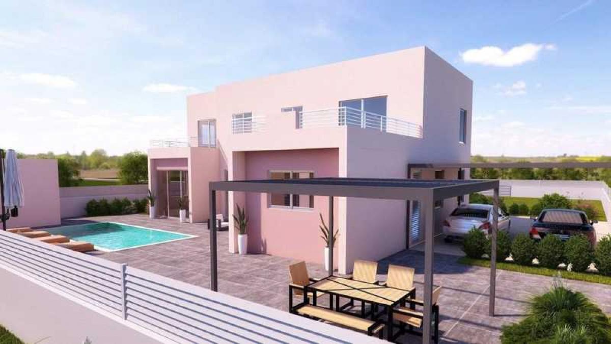Exceptionally large 5 bedroom villa, located in a very quiet area of lower Geroskipou close to the famous sandy beach.Featuring on the ground floor a large living room, dining area and kitchen with island all opening out onto the large patio area with pool. There is a room on the ground floor used as an office.
