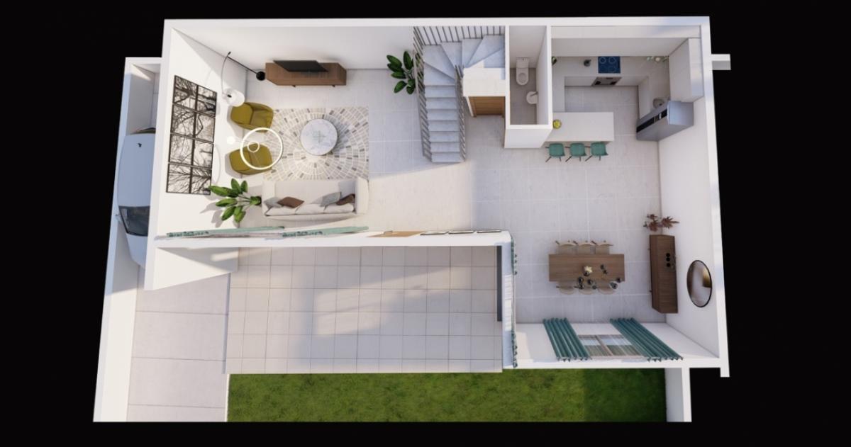 The area and surroundings which were chosen by the developer for this residential complex unexpectedly turned out to be 'ready to support' such desired atmosphere of carefree leisurely: the houses are located on a hill in the area with developed infrastructure, it is in the immediate vicinity of the sea, are designed with modern layout and equipped with everything that ever is necessary, a green courtyard will be planted here, and most importantly and awesome - considering that the bustling tourist urban area of Paphos near by - here there is such silence that provides real peace of mind. So, thanks to all the designers and architects, as well as many other specialists, 'the village kinfolks' will appear here very soon and they will be light, airy, slightly bohemian and relaxing homes.