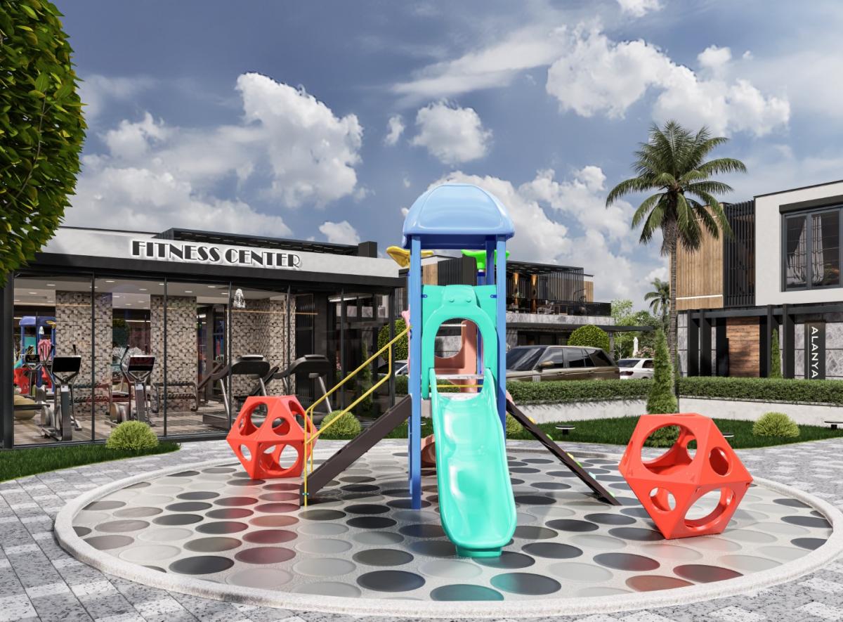 Each villa is designed with a clean finish, equipped bathrooms, a fully fitted kitchen, air conditioning, underfloor heating, a fireplace, modern appliances, CCTV cameras, a video intercom, and sleek aluminum window frames with glass facades. The complex will also feature a fitness center and a playground.