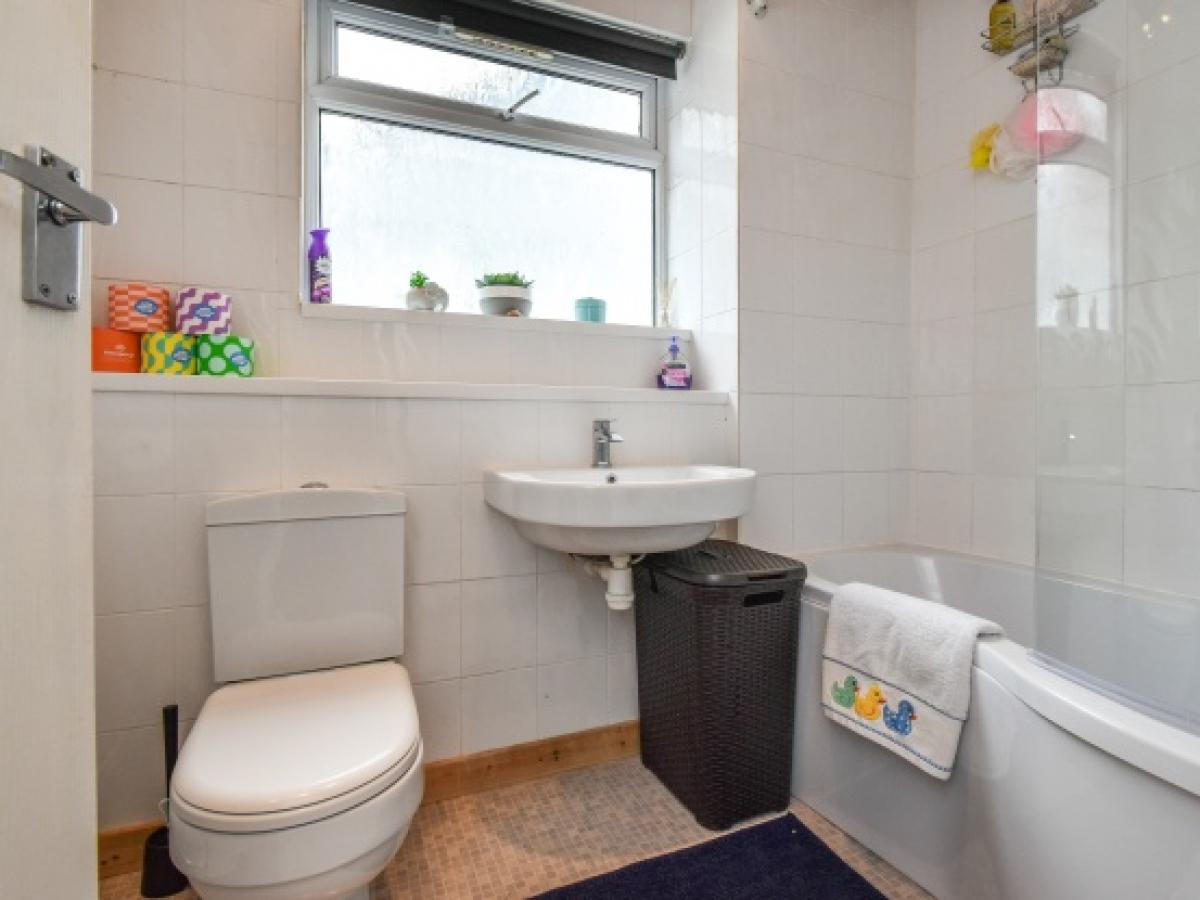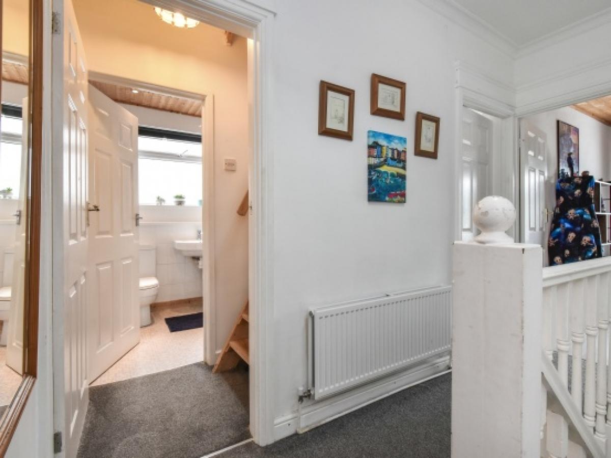 Upstairs, the main sleeping accommodation includes a generously sized principal room with en-suite shower, two further well-proportioned bedrooms, and a neatly tiled family bathroom with shower-over-bath. A converted attic offers a fourth loft room -- currently used as a guest room or playroom -- with eaves storage.
